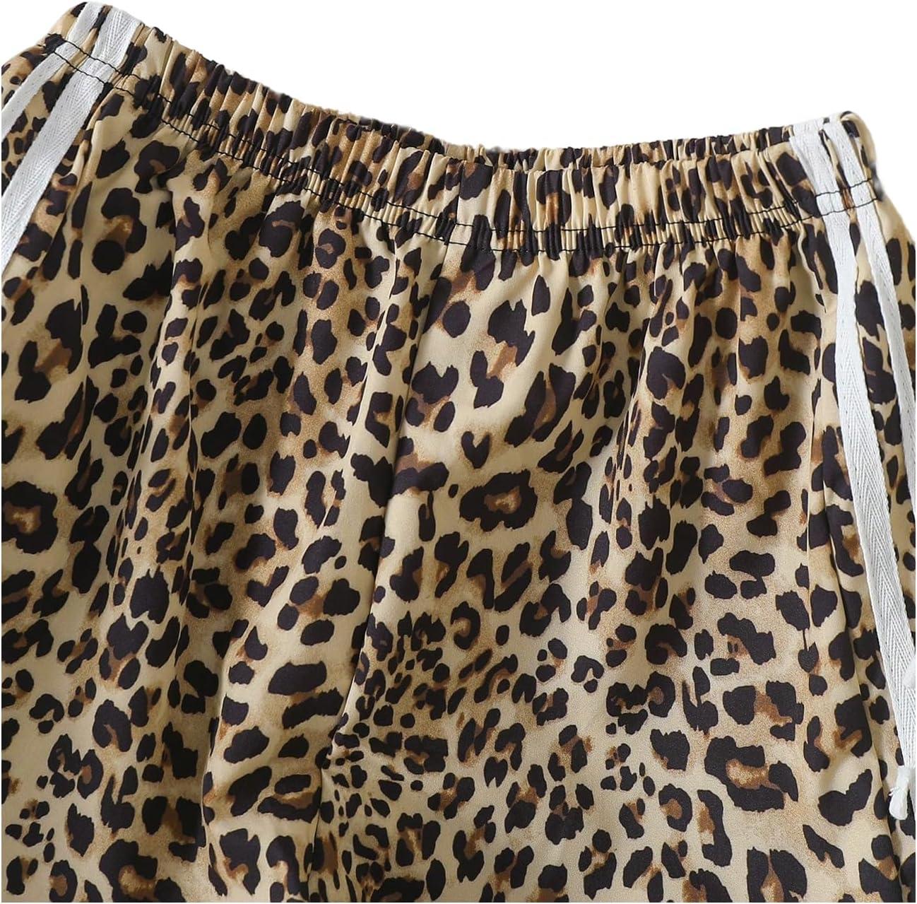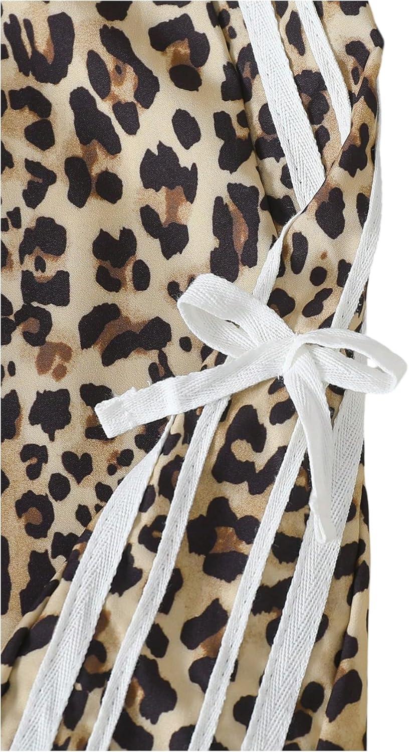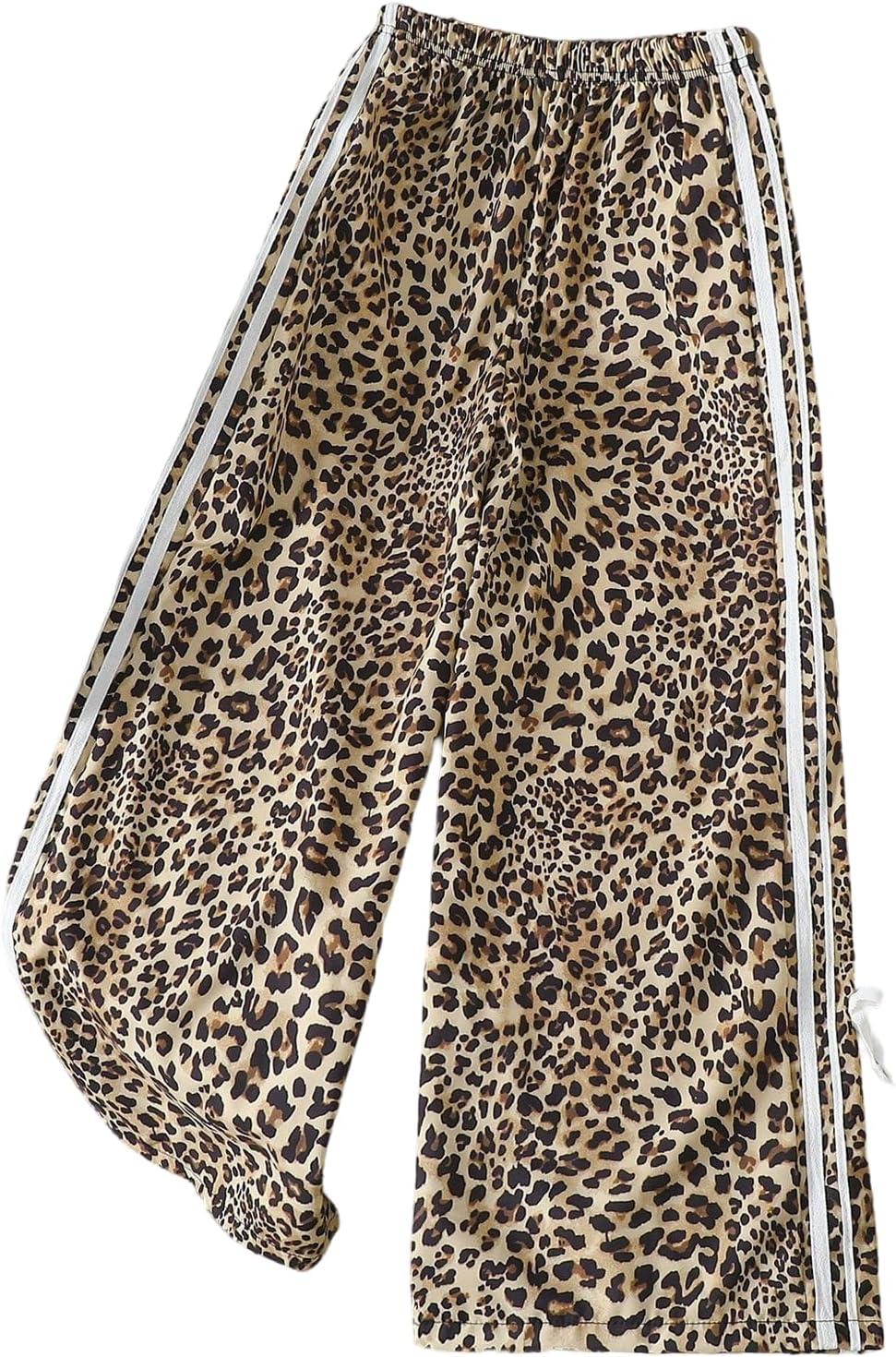SOLY HUX Girl’s Leopard Wide Leg Pants Y2k Bow Cheetah Print Elastic Waist Baggy Long Pants Trousers(Brown Leopard)