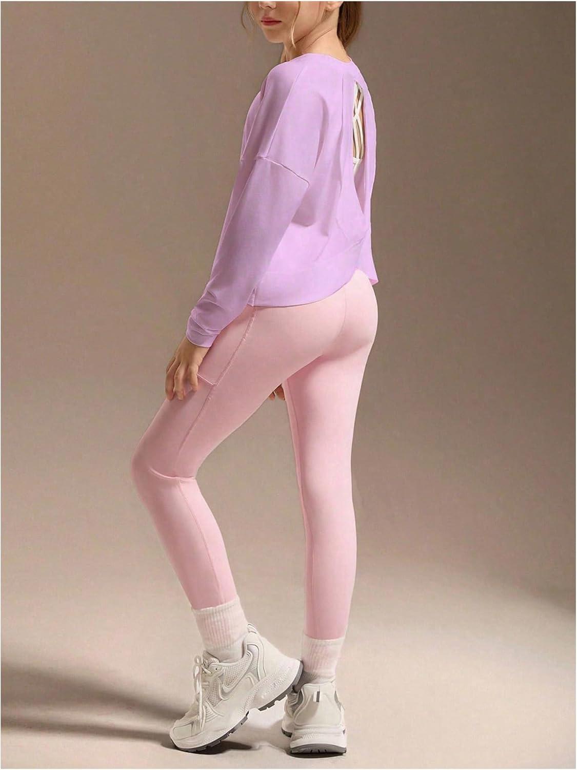 SOLY HUX Girl’s Long Sleeve T-Shirt Cutout Athletic Shirts Basic Sports Tee Tops Activewear(Pure Pink)