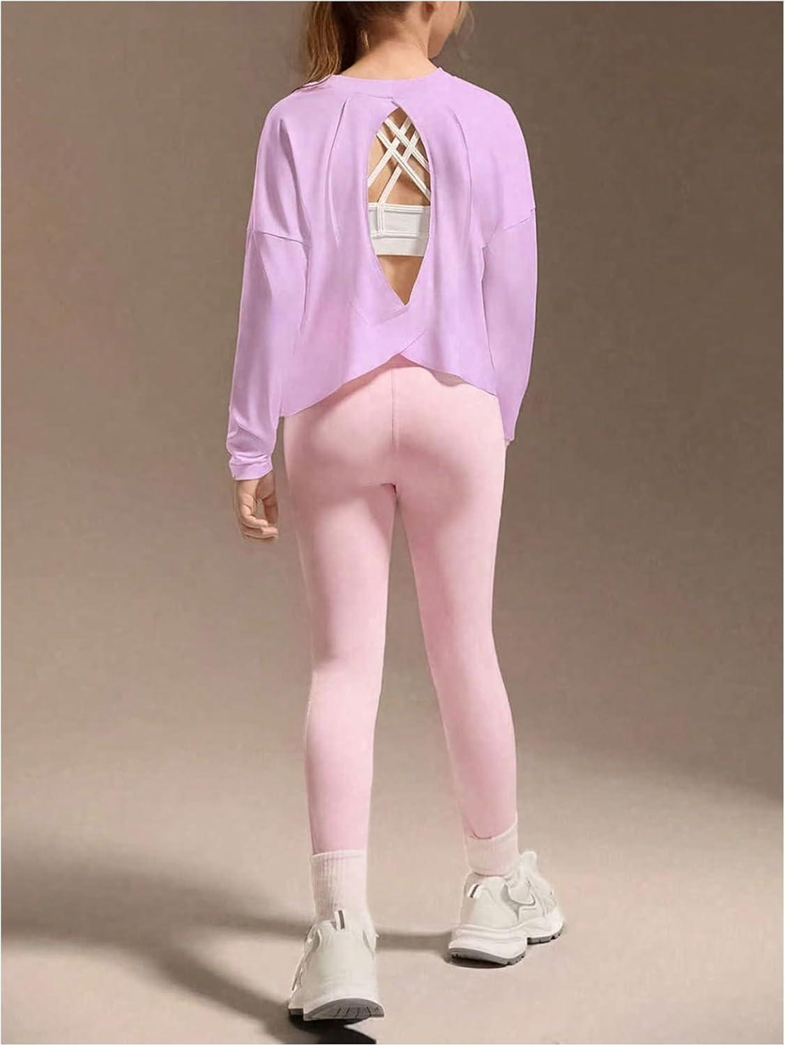 SOLY HUX Girl’s Long Sleeve T-Shirt Cutout Athletic Shirts Basic Sports Tee Tops Activewear(Pure Purple)