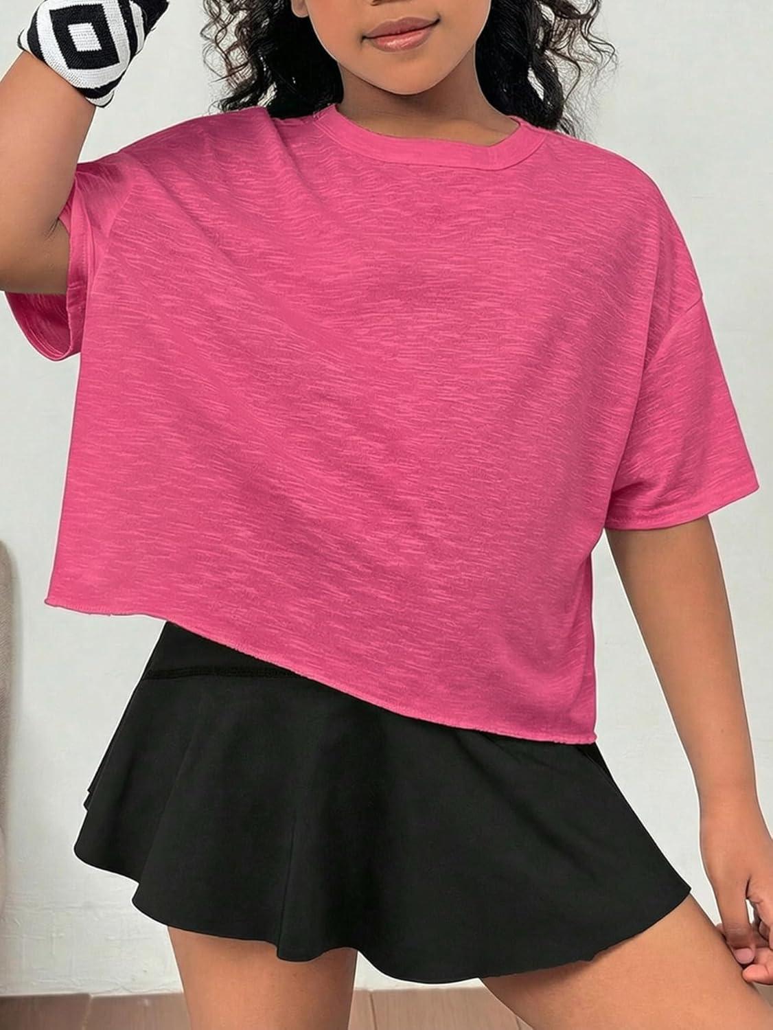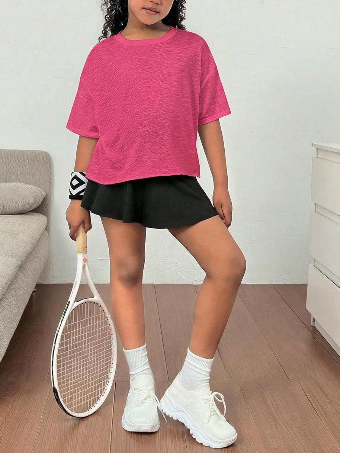 SOLY HUX Girl’s Open Back Workout Tops Short Sleeve Crew Neck Running Sports T Shirts Summer Clothes(Hot Pink)