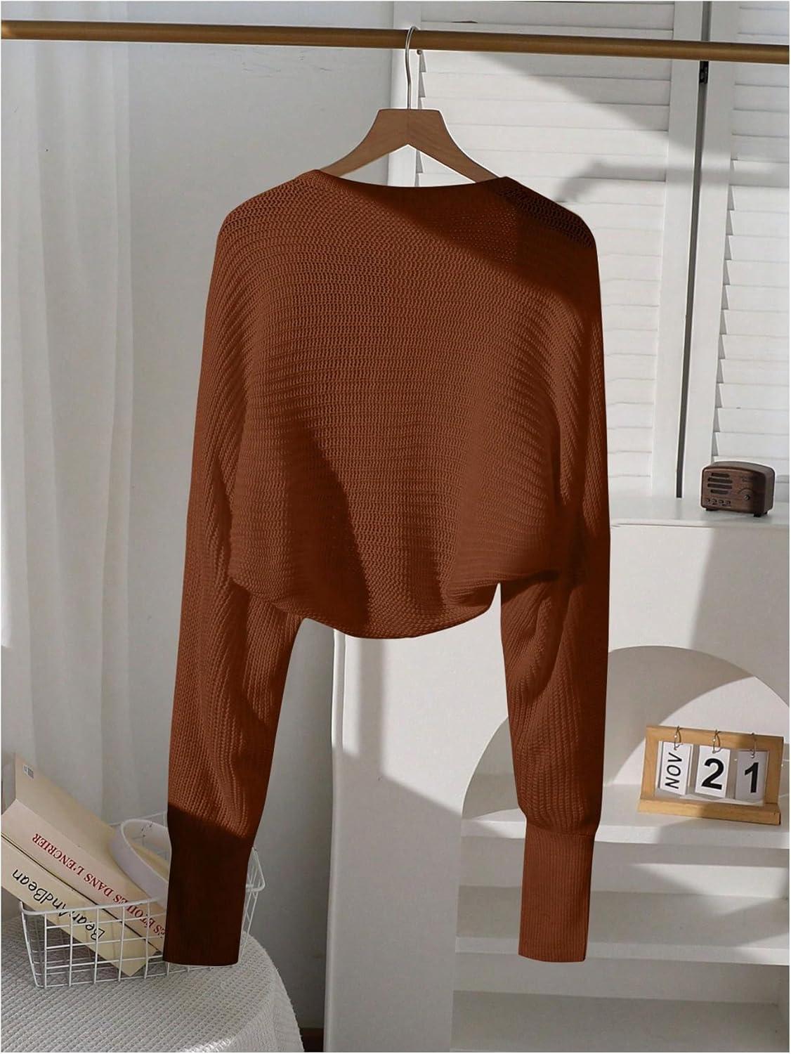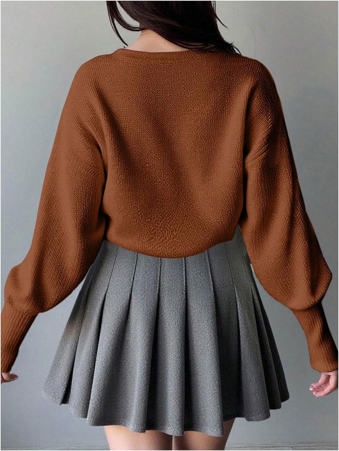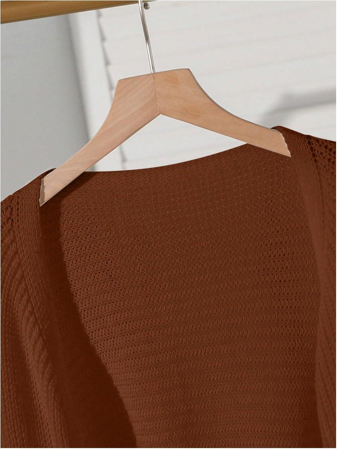 SOLY HUX Girl’s Open Front Cardigan Sweater Long Sleeve Knit Crop Bolero Shrugs Outerwear(Plain Brown)
