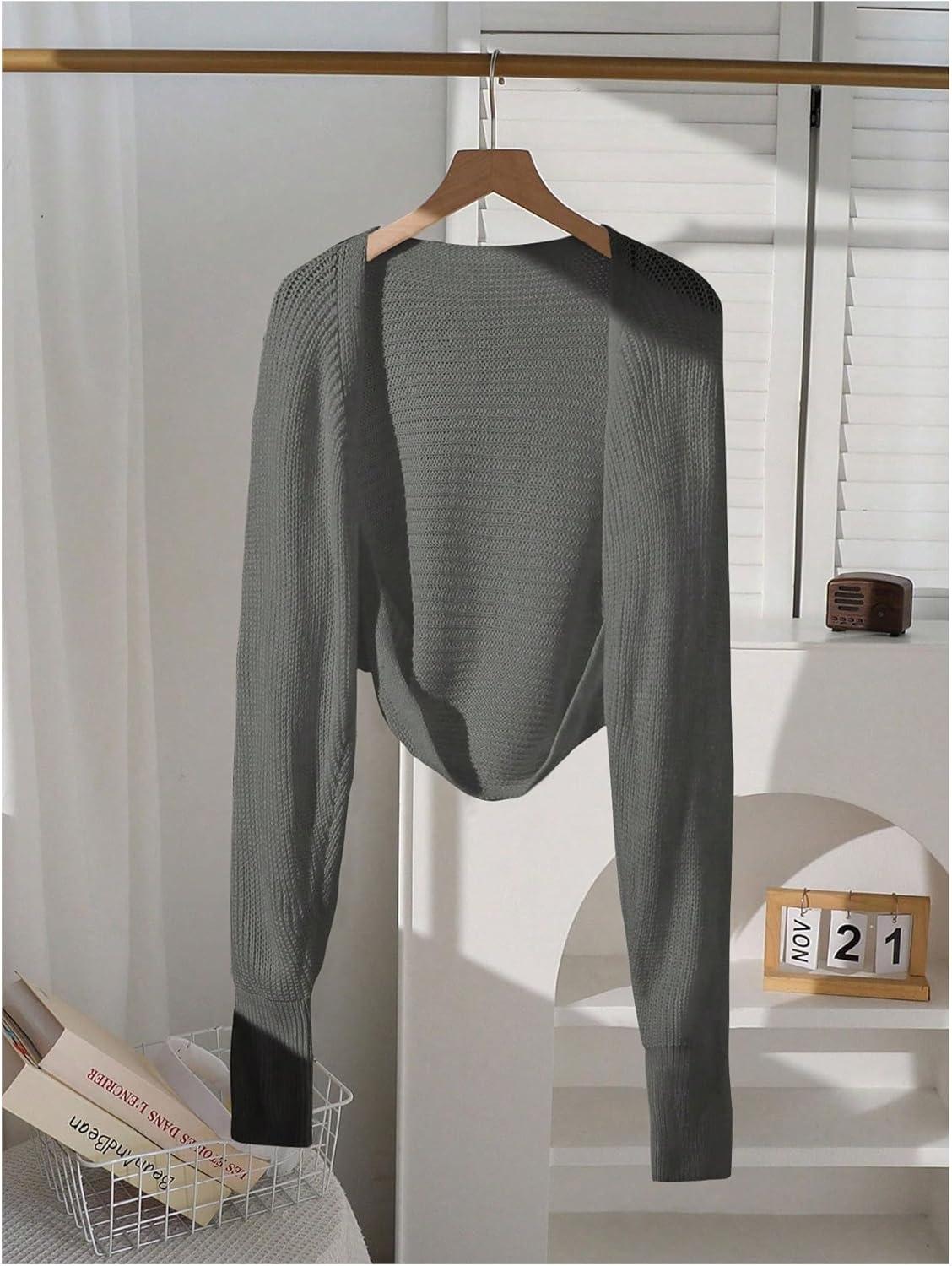 SOLY HUX Girl’s Open Front Cardigan Sweater Long Sleeve Knit Crop Bolero Shrugs Outerwear(Plain Grey)