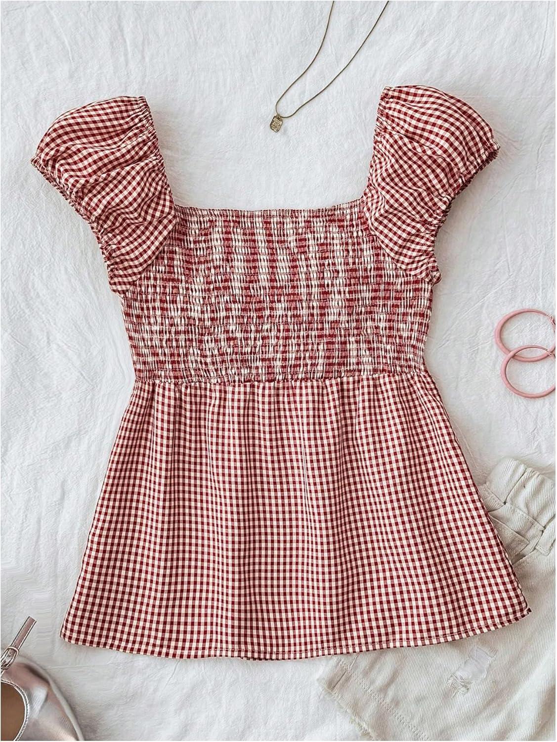 Be the first to review “SOLY HUX Girl’s Plaid Gingham Tops Sweetheart Neck Puff Sleeve Peplum Cute Summer Blouse(Burgundy Plaid)”