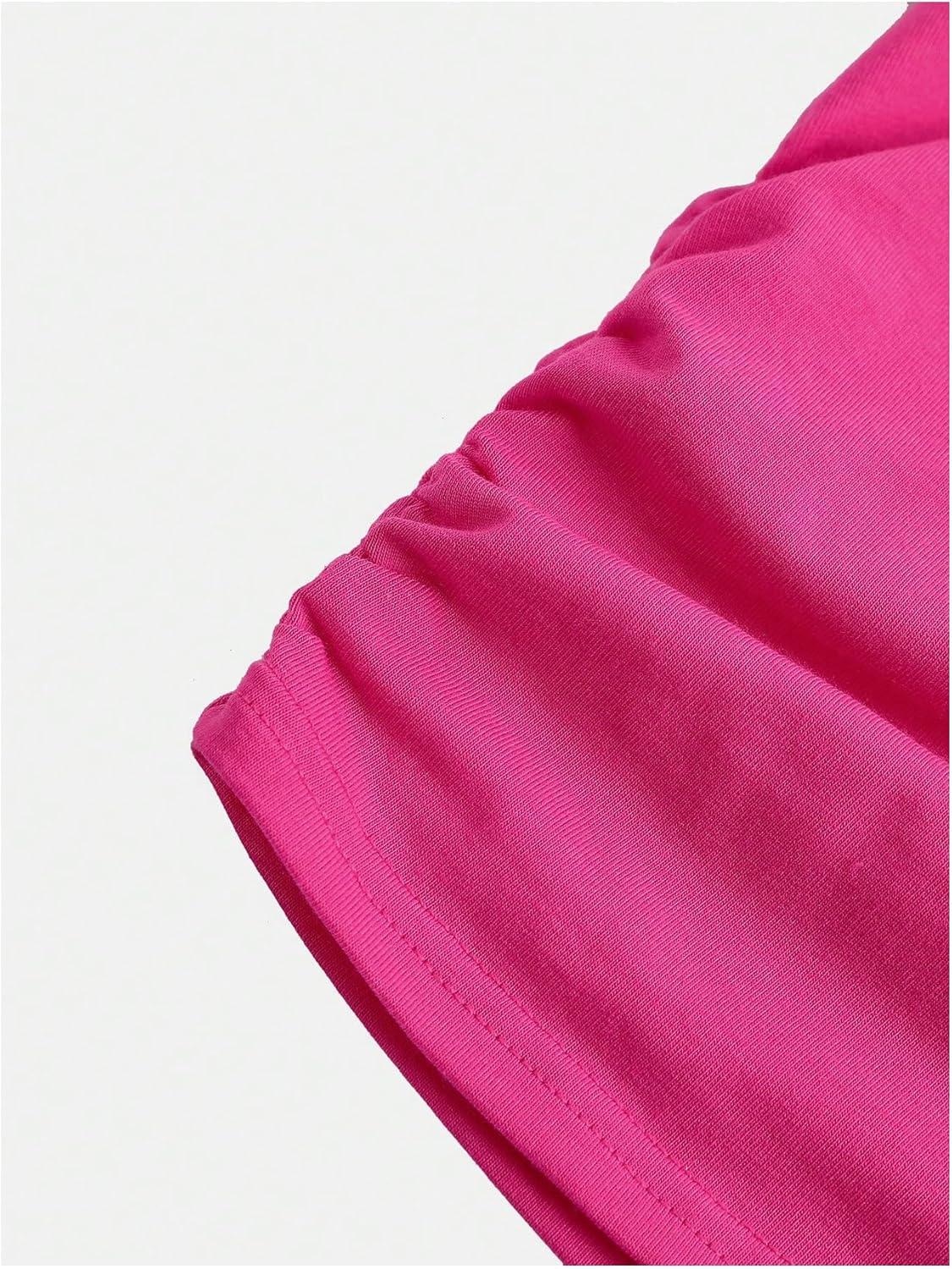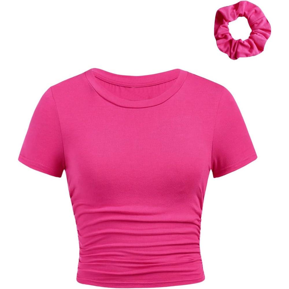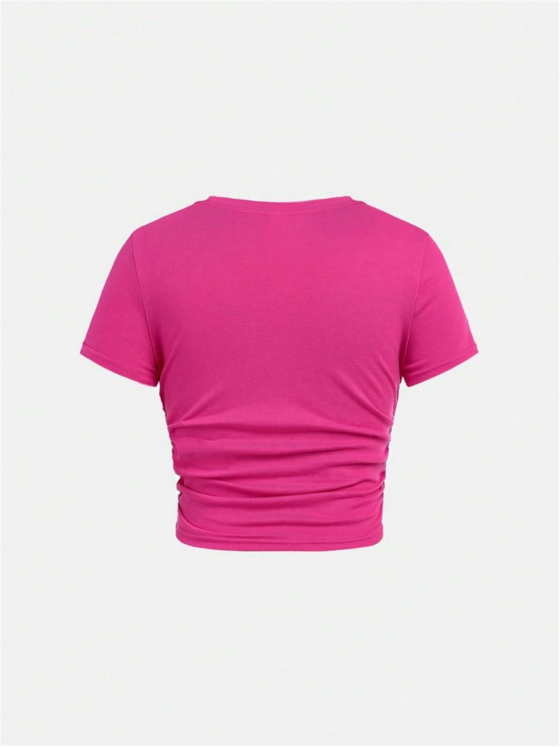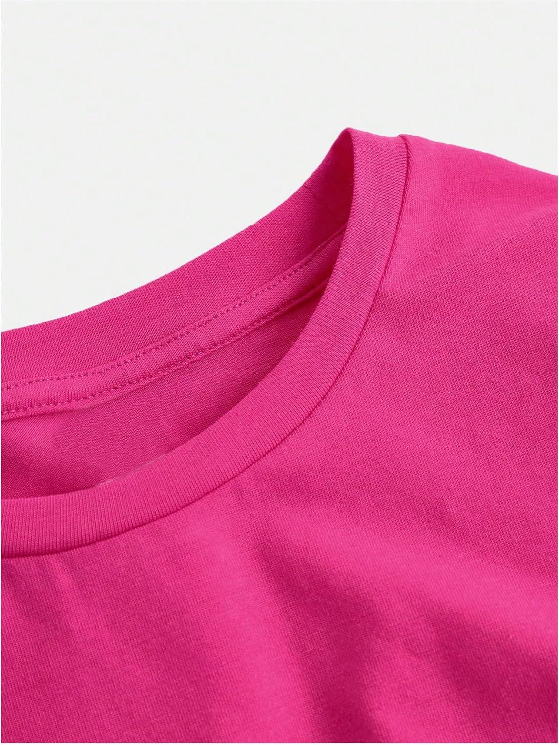 SOLY HUX Girl’s Short Sleeve Crew Neck Slim Fitted Basic T-Shirts Summer Tops with Hair Ties(Hot Pink)