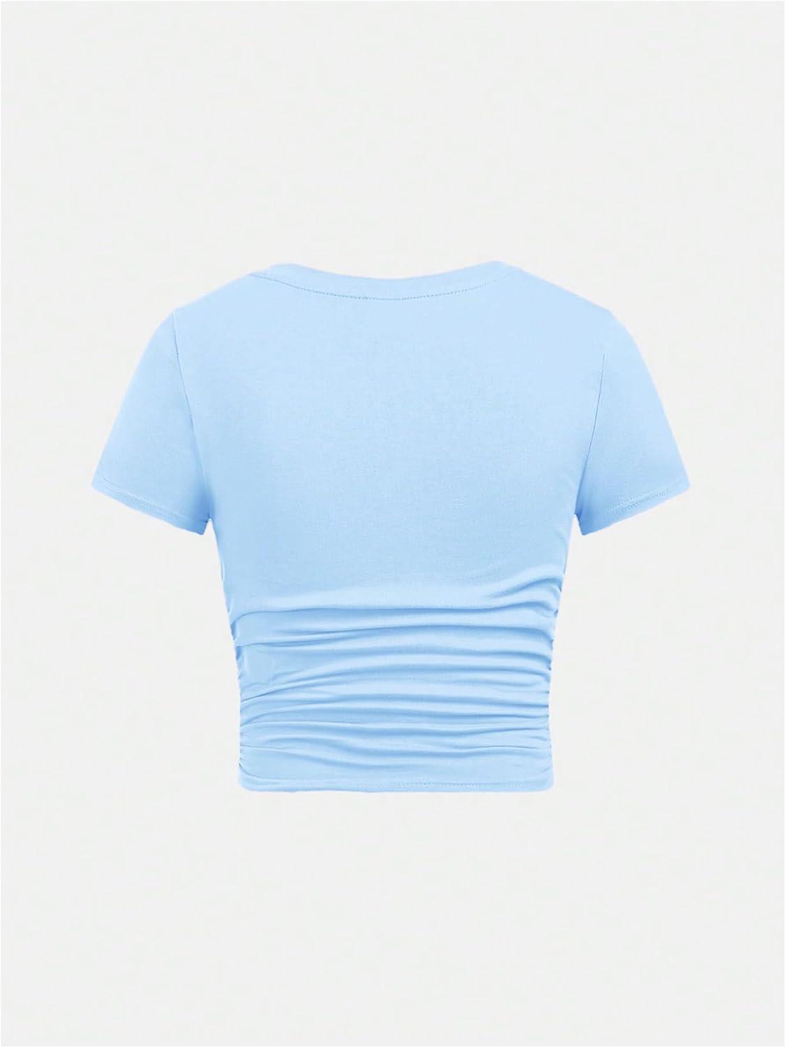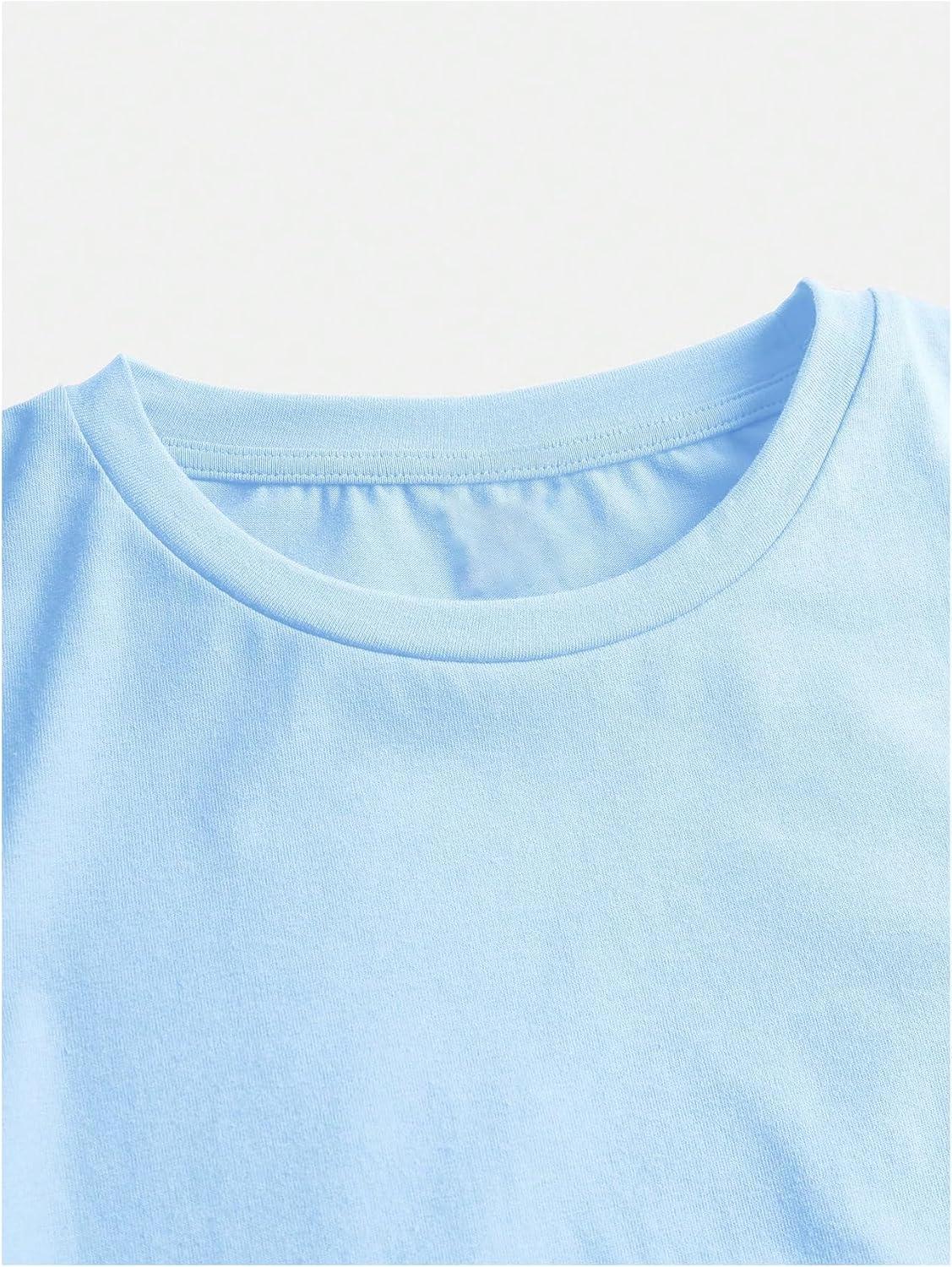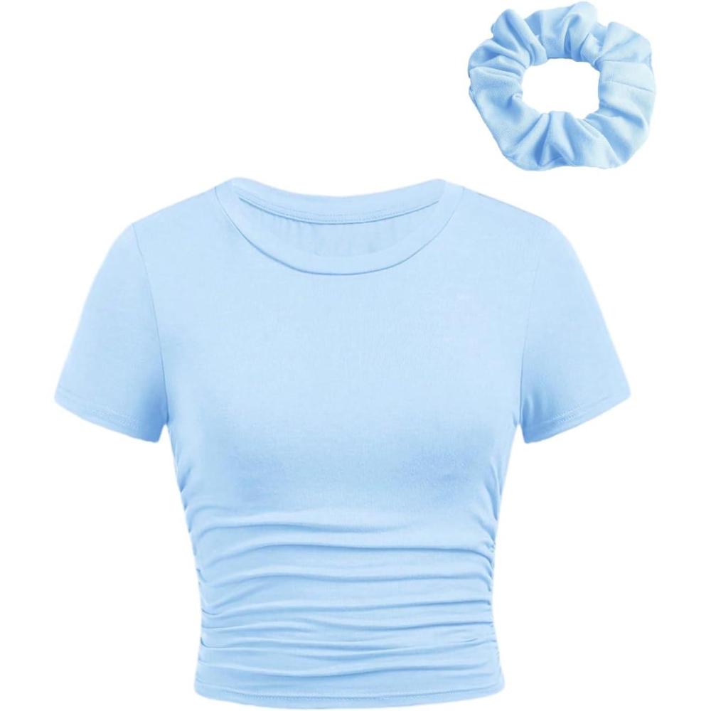 SOLY HUX Girl’s Short Sleeve Crew Neck Slim Fitted Basic T-Shirts Summer Tops with Hair Ties(Light Blue)
