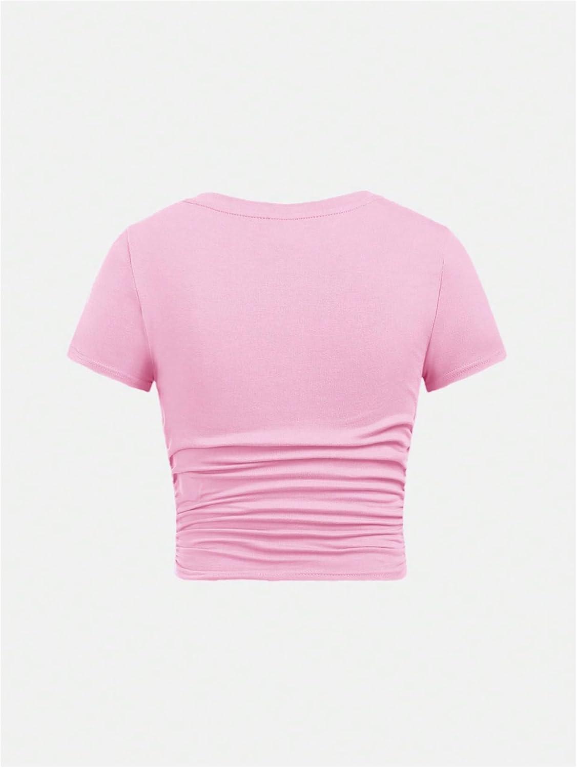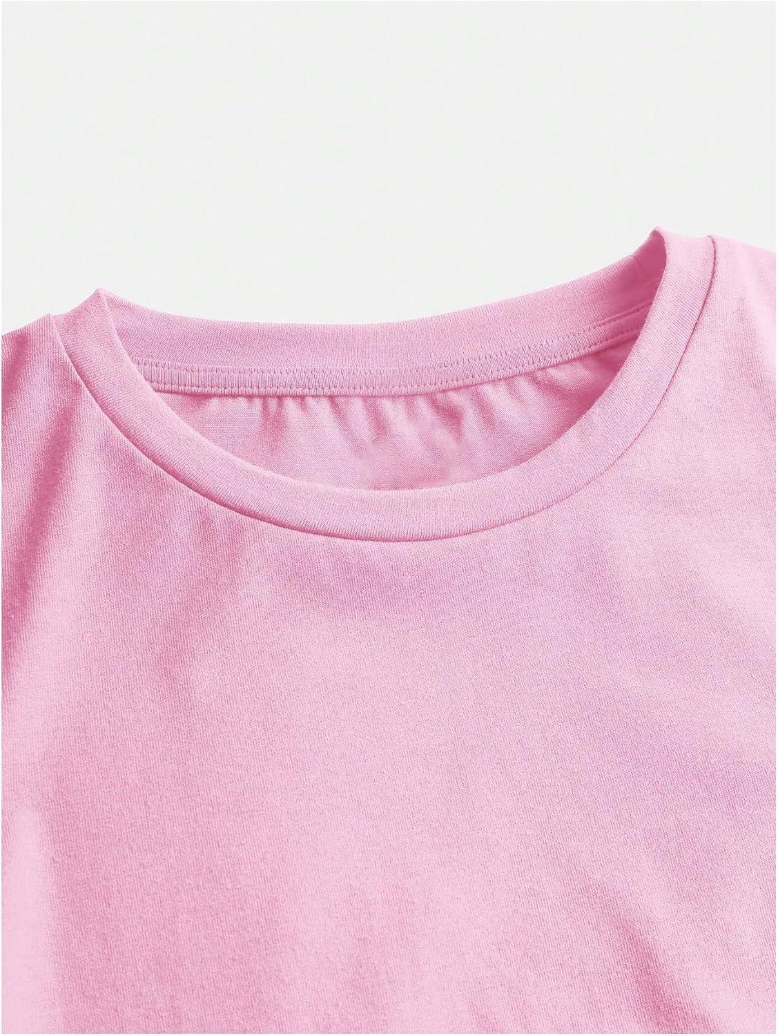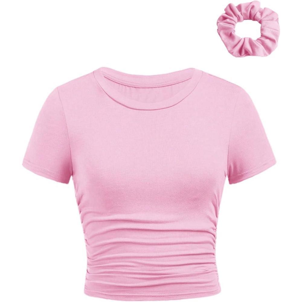 SOLY HUX Girl’s Short Sleeve Crew Neck Slim Fitted Basic T-Shirts Summer Tops with Hair Ties(Light Pink)