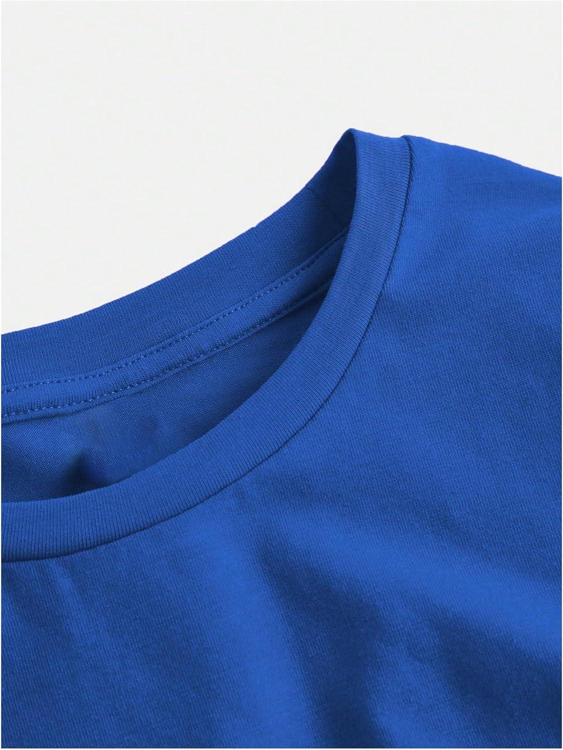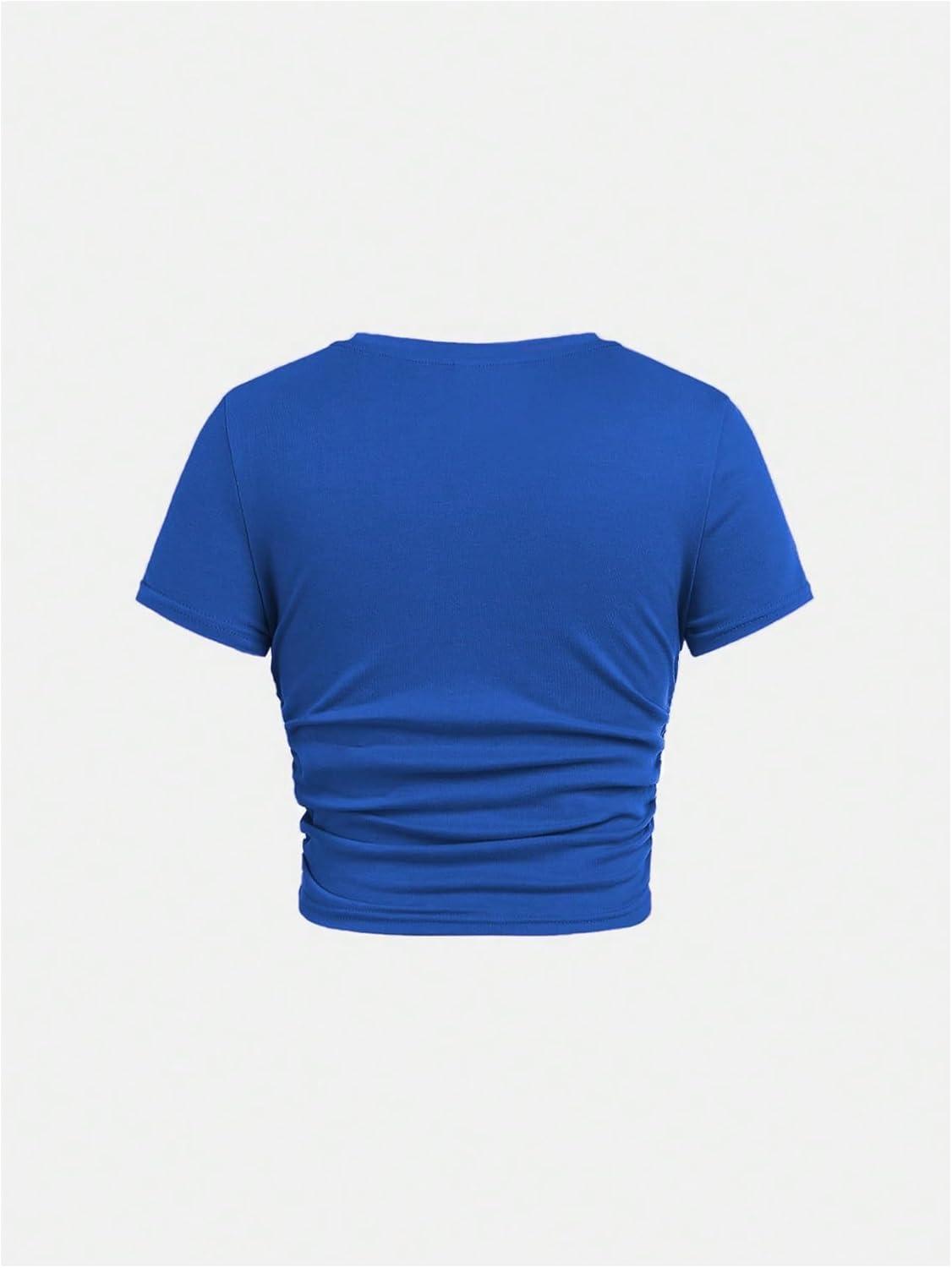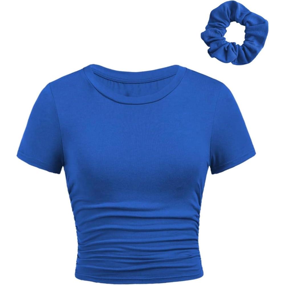 SOLY HUX Girl’s Short Sleeve Crew Neck Slim Fitted Basic T-Shirts Summer Tops with Hair Ties(Royal Blue)