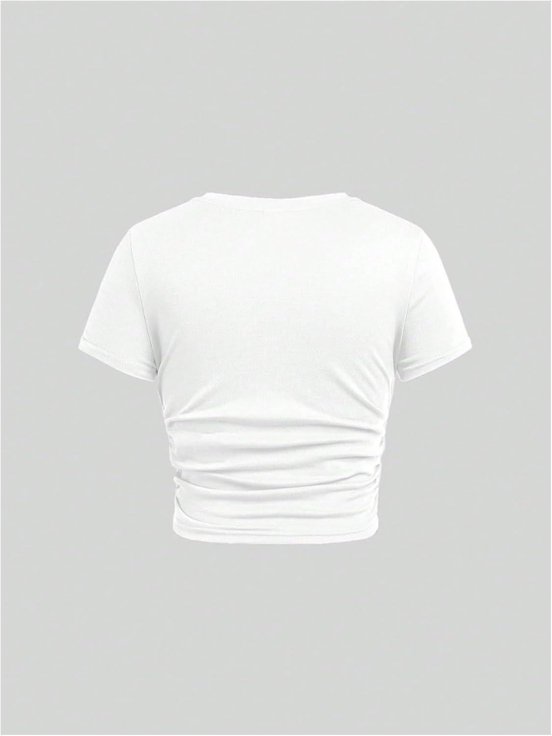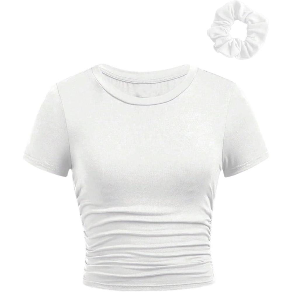 SOLY HUX Girl’s Short Sleeve Crew Neck Slim Fitted Basic T-Shirts Summer Tops with Hair Ties(Solid White)