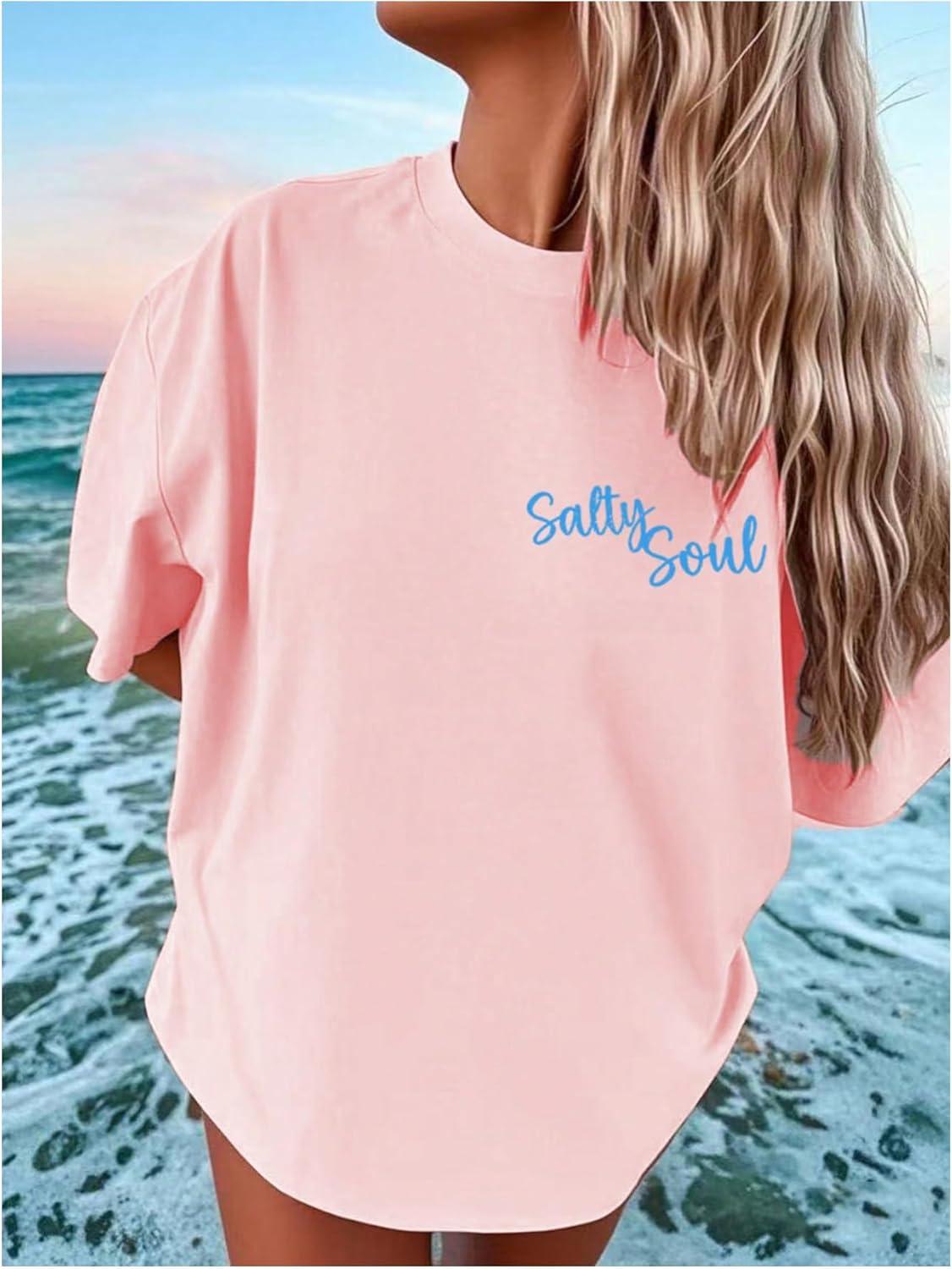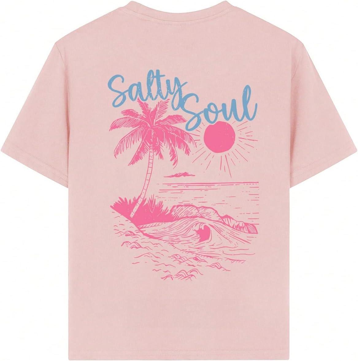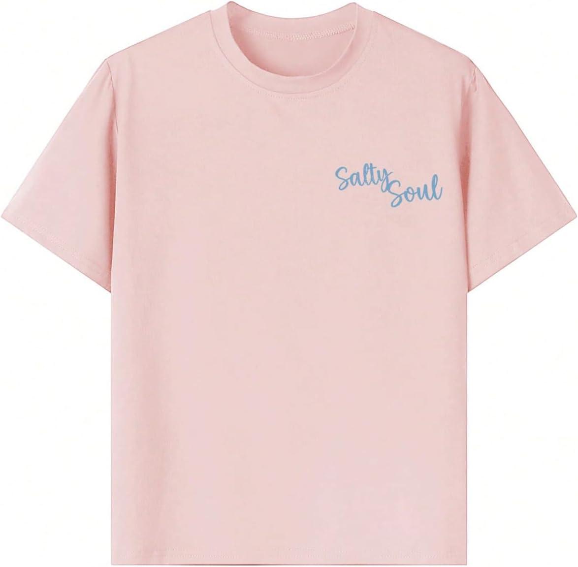 SOLY HUX Girl’s Short Sleeve Graphic Tees Crew Neck Beach Tops Casual Summer T-Shirts(Light Pink Graphic)