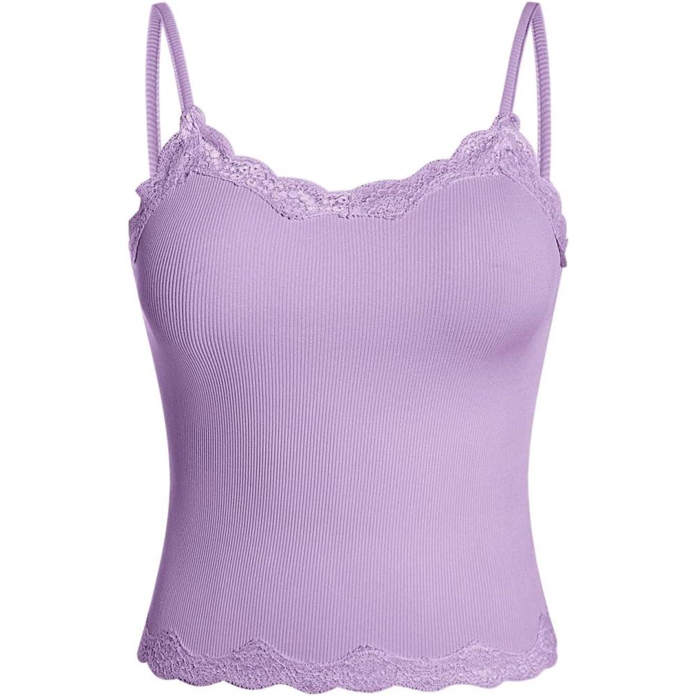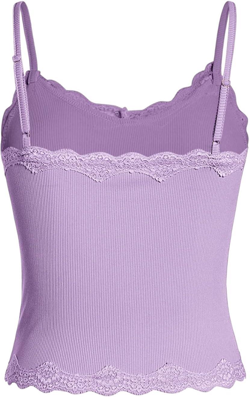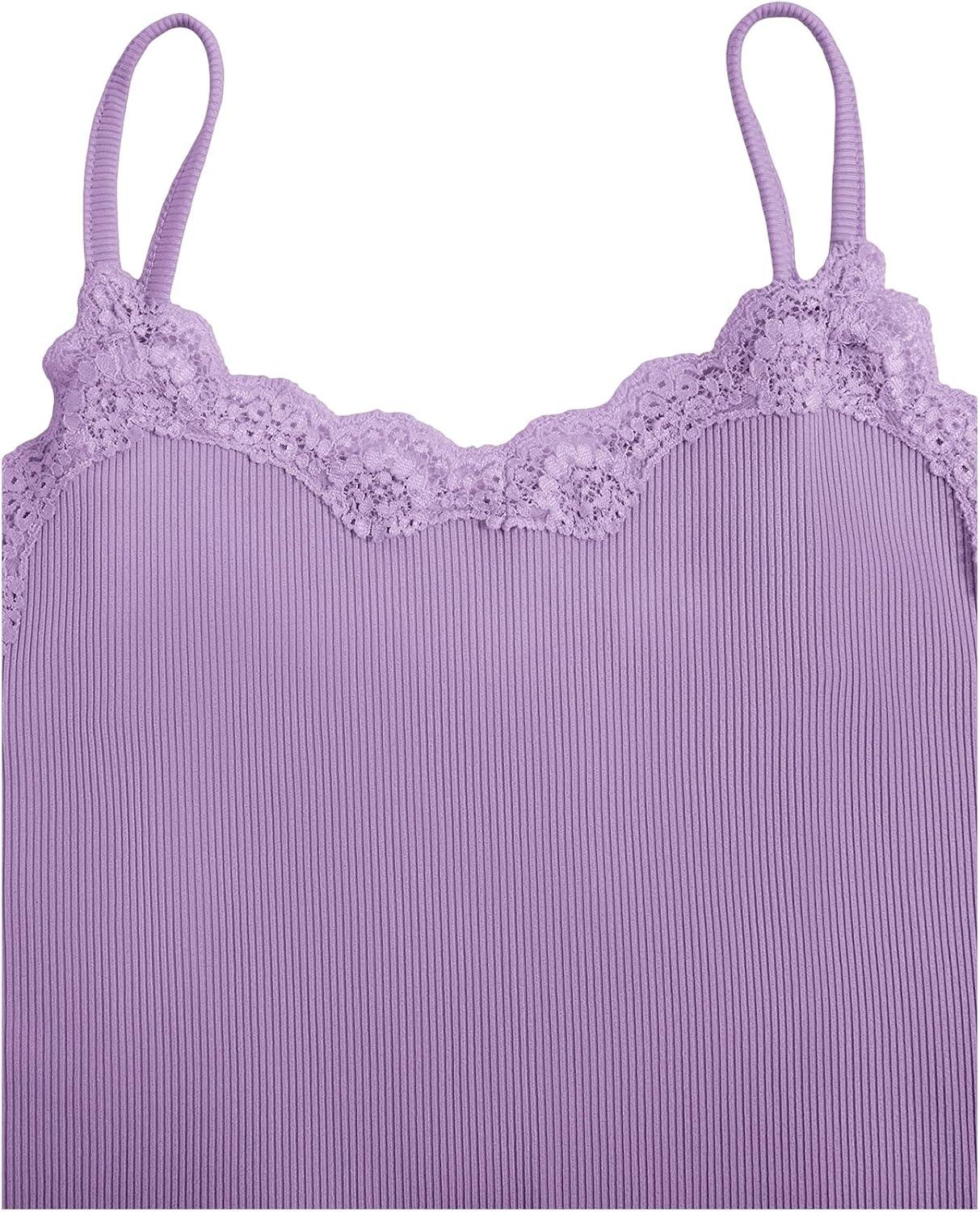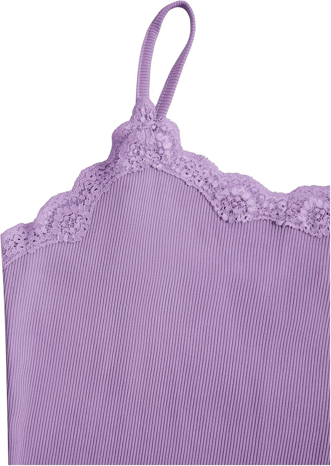 SOLY HUX Girl’s Sleeveless Lace Trim Camisoles Spaghetti Strap Ribbed Crop Tank Tops(Pure Mauve Purple)