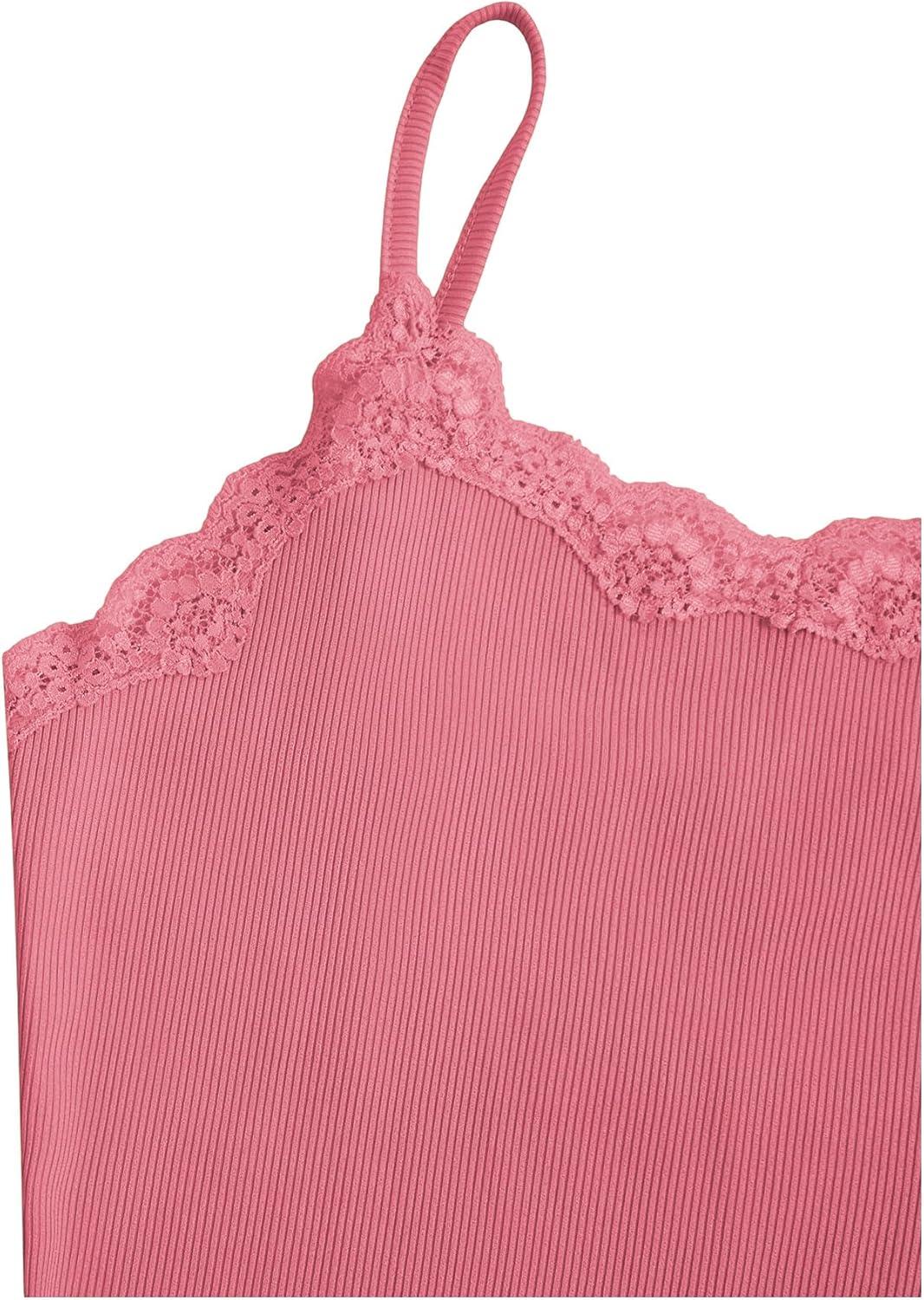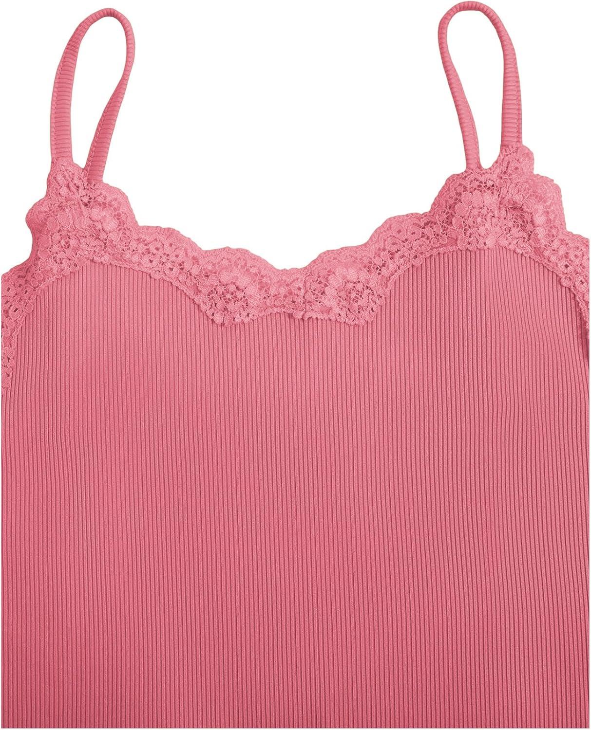 SOLY HUX Girl’s Sleeveless Lace Trim Camisoles Spaghetti Strap Ribbed Crop Tank Tops(Pure Pink)