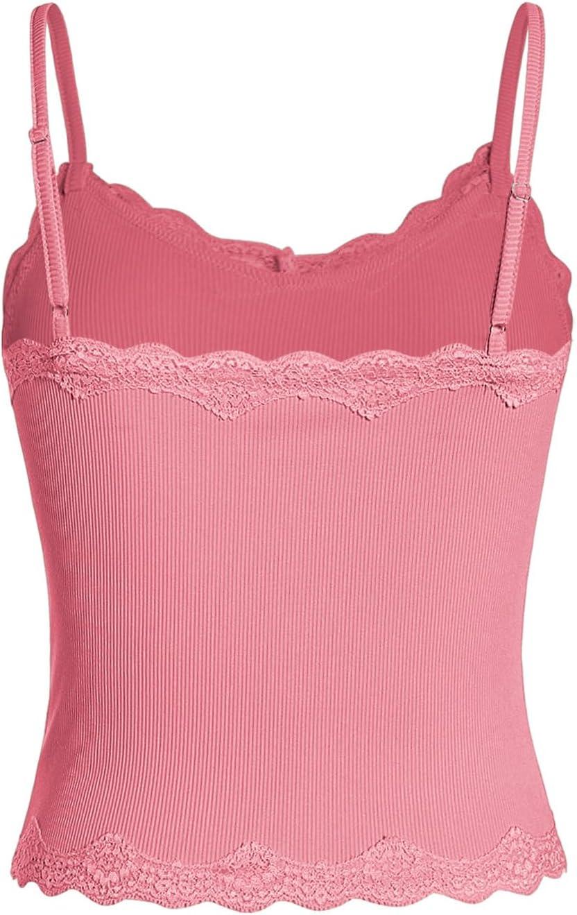 imageSOLY HUX Girls Sleeveless Lace Trim Camisoles Spaghetti Strap Ribbed Crop Tank TopsPure Pink