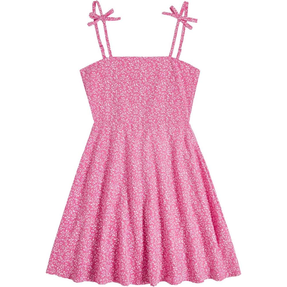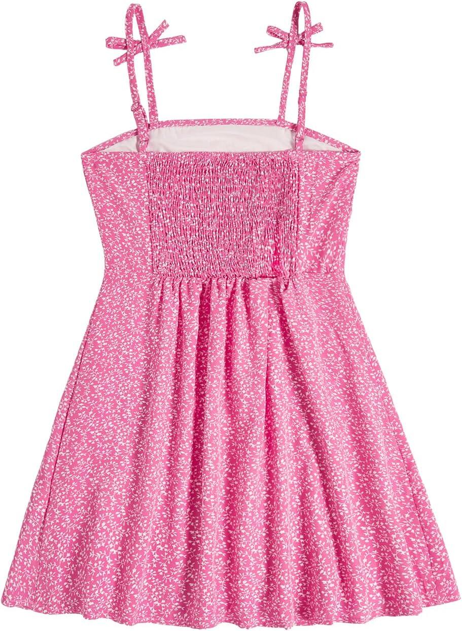 SOLY HUX Girl’s Spaghetti Strap Dress Floral Print Sleeveless Summer Beach Casual Sundress A-line Mini Dresses(Dark Pink)