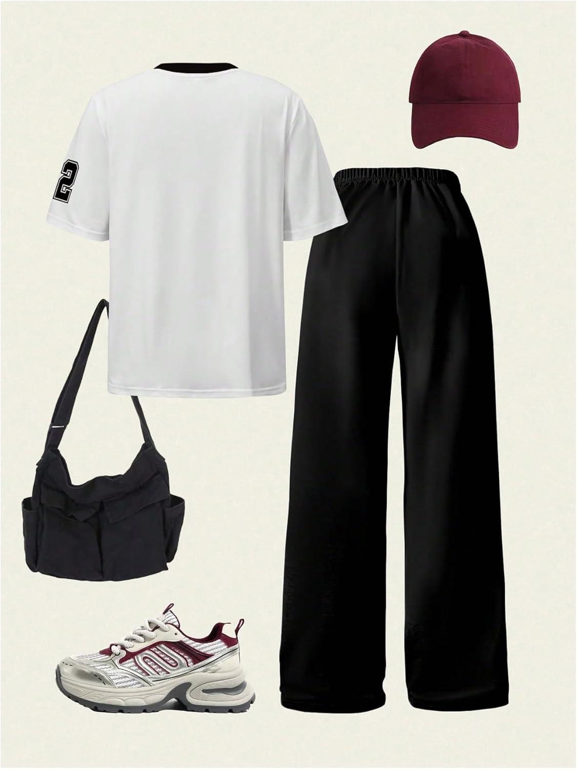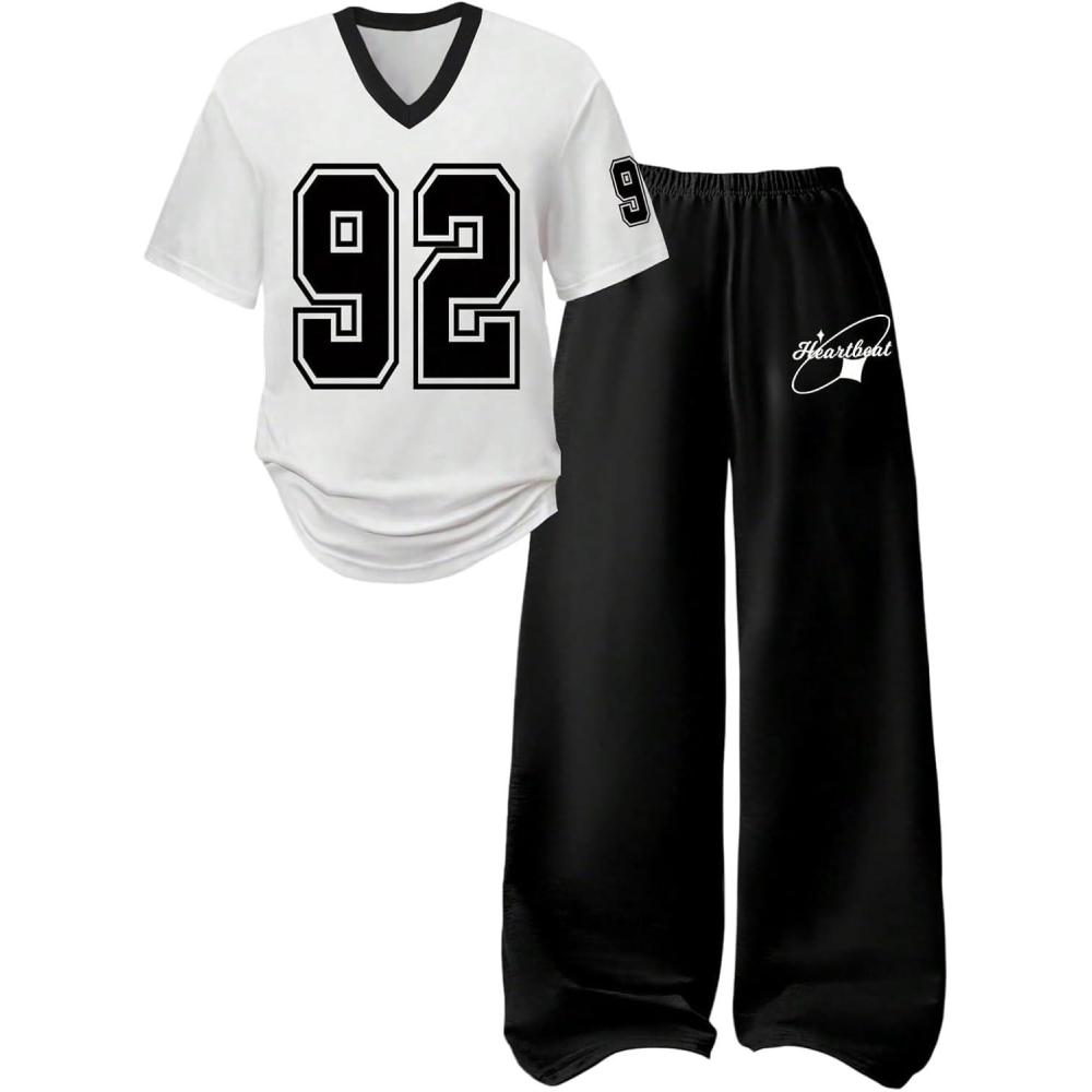 SOLY HUX Girl’s Sporty Outfits Number Graphic Jersey Shirt and Baggy Sweatpants Suit 2 Piece Set(White and Black)