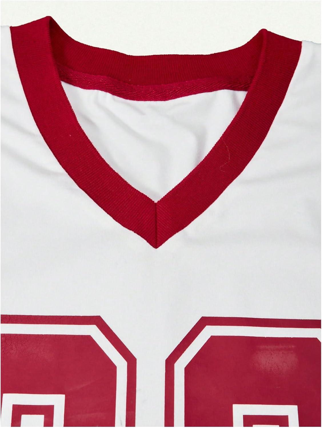 imageSOLY HUX Girls Sporty Outfits Number Graphic Jersey Shirt and Baggy Sweatpants Suit 2 Piece SetWhite and Black