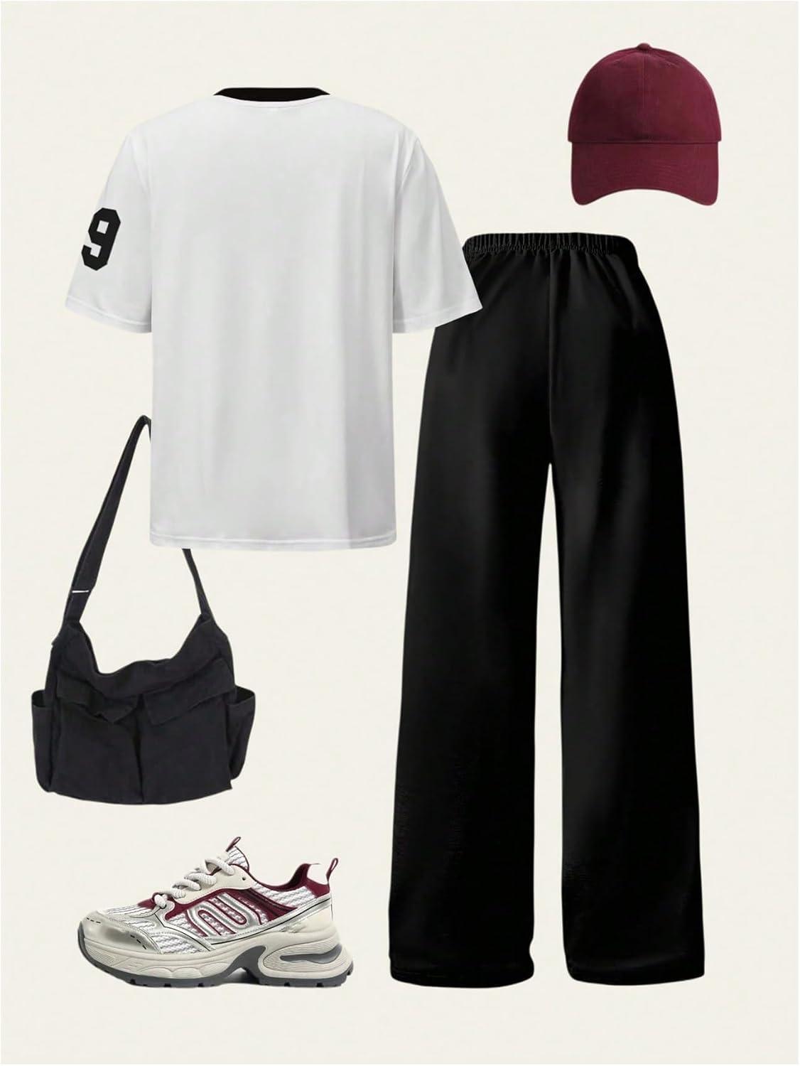 SOLY HUX Girl’s Sporty Outfits Number Graphic Jersey Shirt and Baggy Sweatpants Suit 2 Piece Set(Black White Letter)