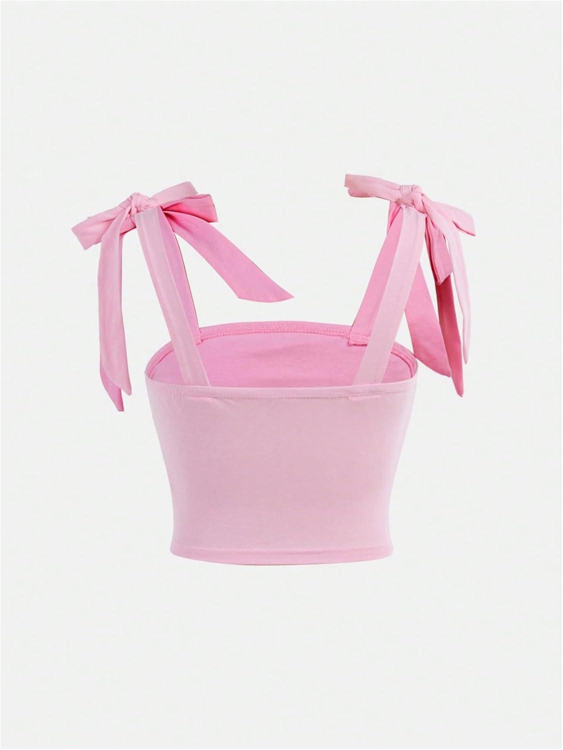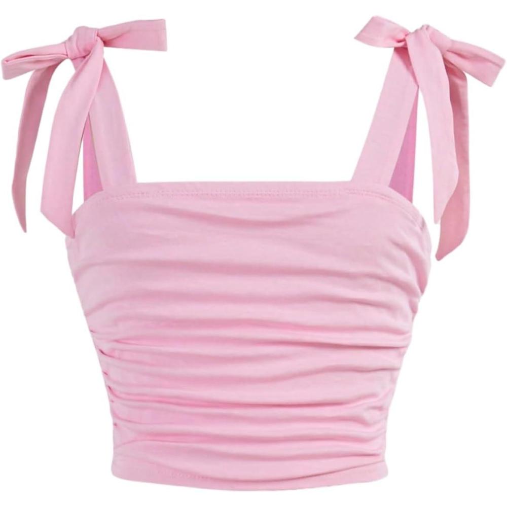 SOLY HUX Girl’s Square Neck Crop Tank Top Sleeveless Bow Tie Camisole Ruched Cute Clothes(Plain Light Pink)