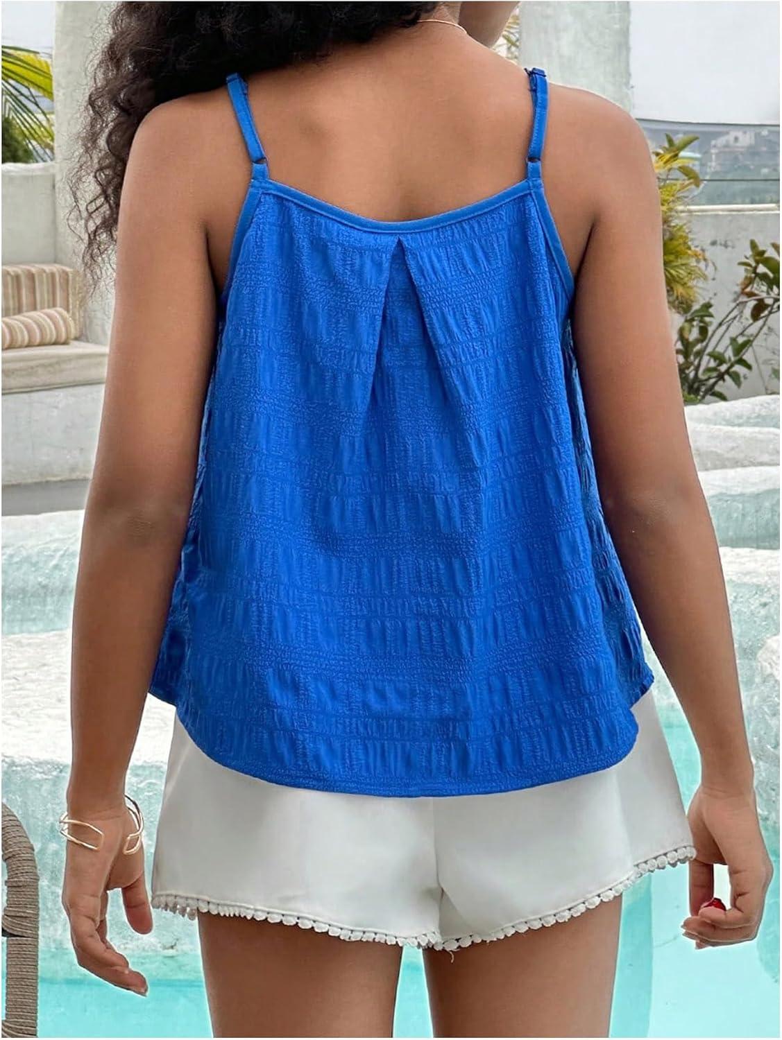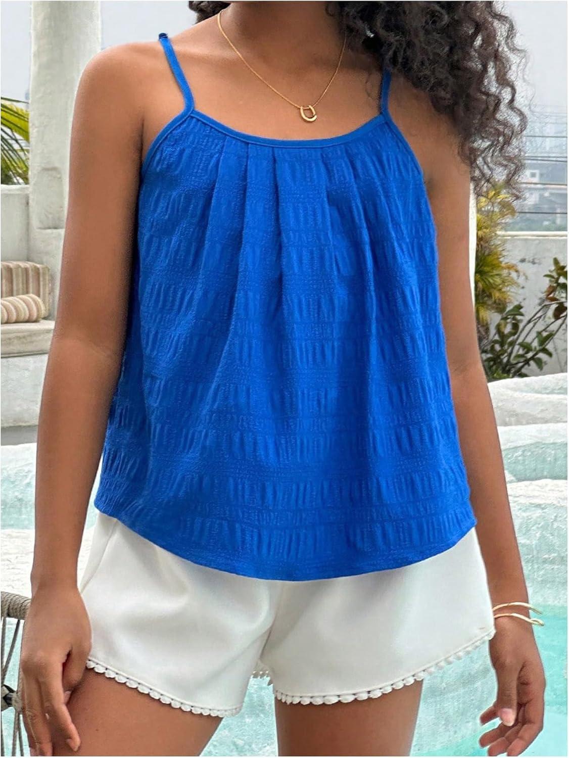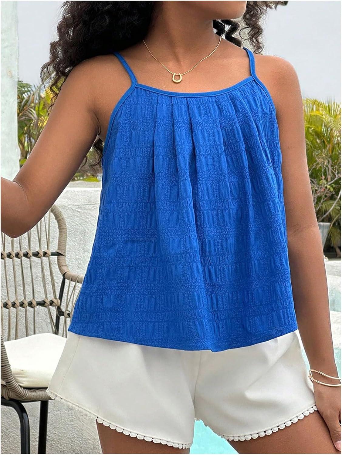 SOLY HUX Girl’s Summer Camisole Tops Spaghetti Strap Pleated Cute Vacation Cami Shirts(Royal Blue)