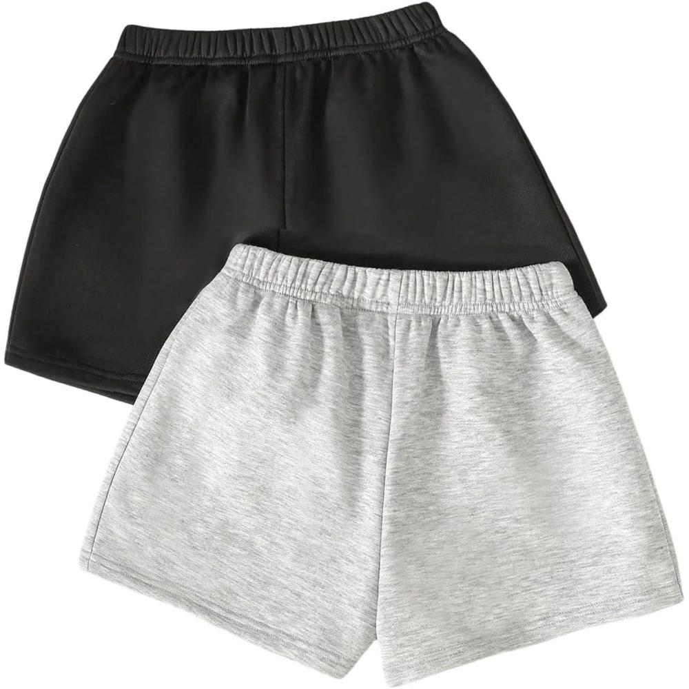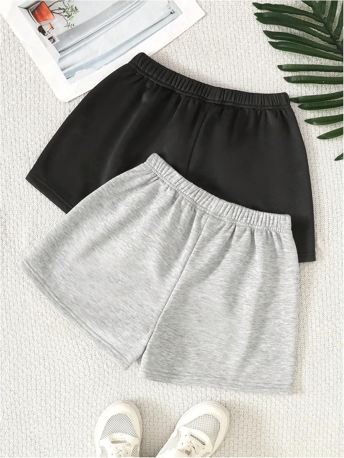 SOLY HUX Girl’s Summer Casual Sweat Shorts 2 Packs Elastic Waist Wide Leg Short Pants with Pocket(Black and Grey)
