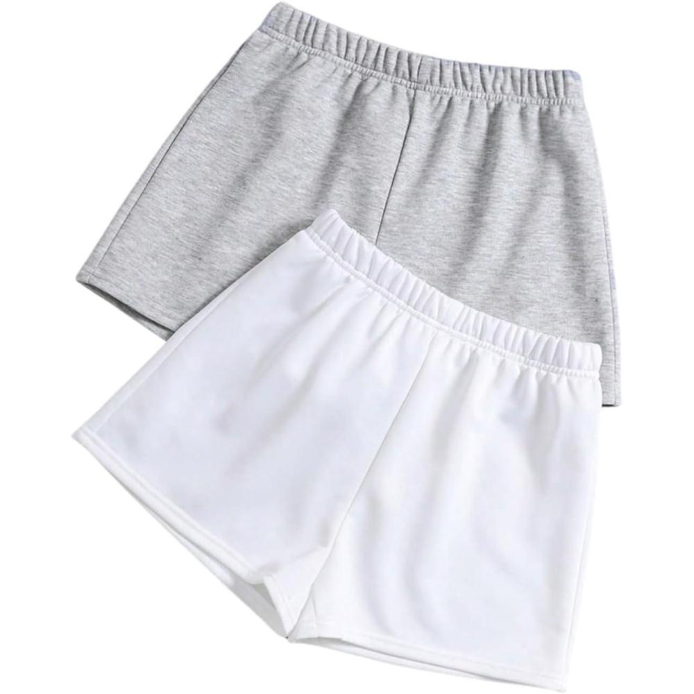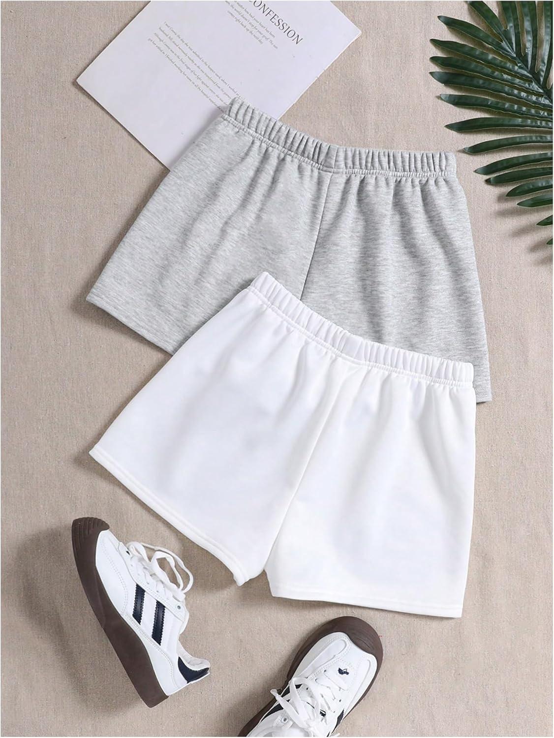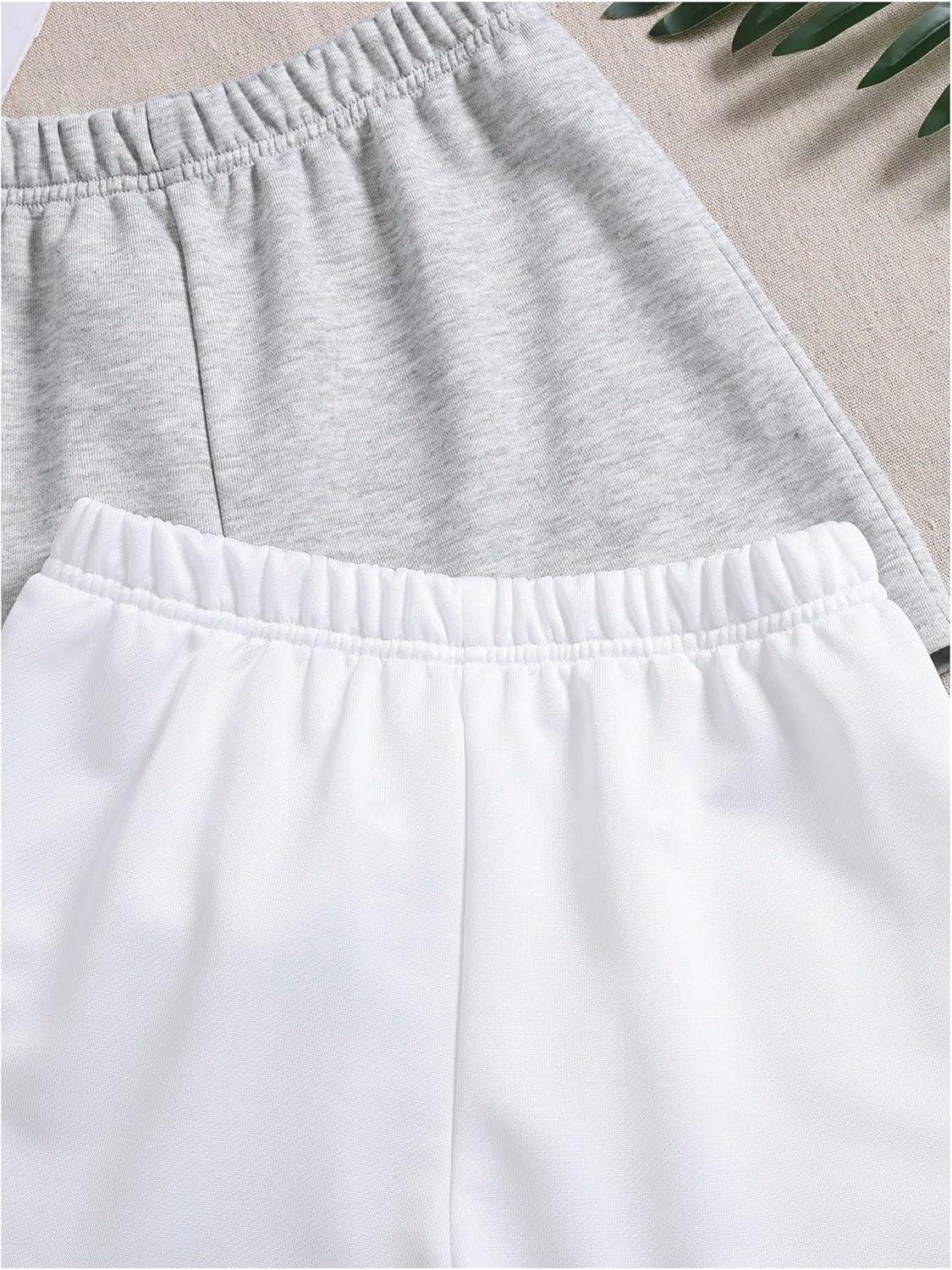 SOLY HUX Girl’s Summer Casual Sweat Shorts 2 Packs Elastic Waist Wide Leg Short Pants with Pocket(Grey and White)