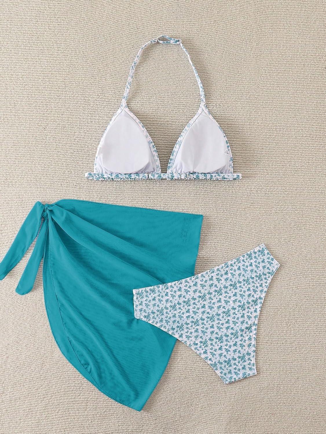 Be the first to review “SOLY HUX Girl’s Summer Swimsuit Set Floral Halter Triangle Bikini Set with Wrap Skirts Beachwear(Olive Green)”