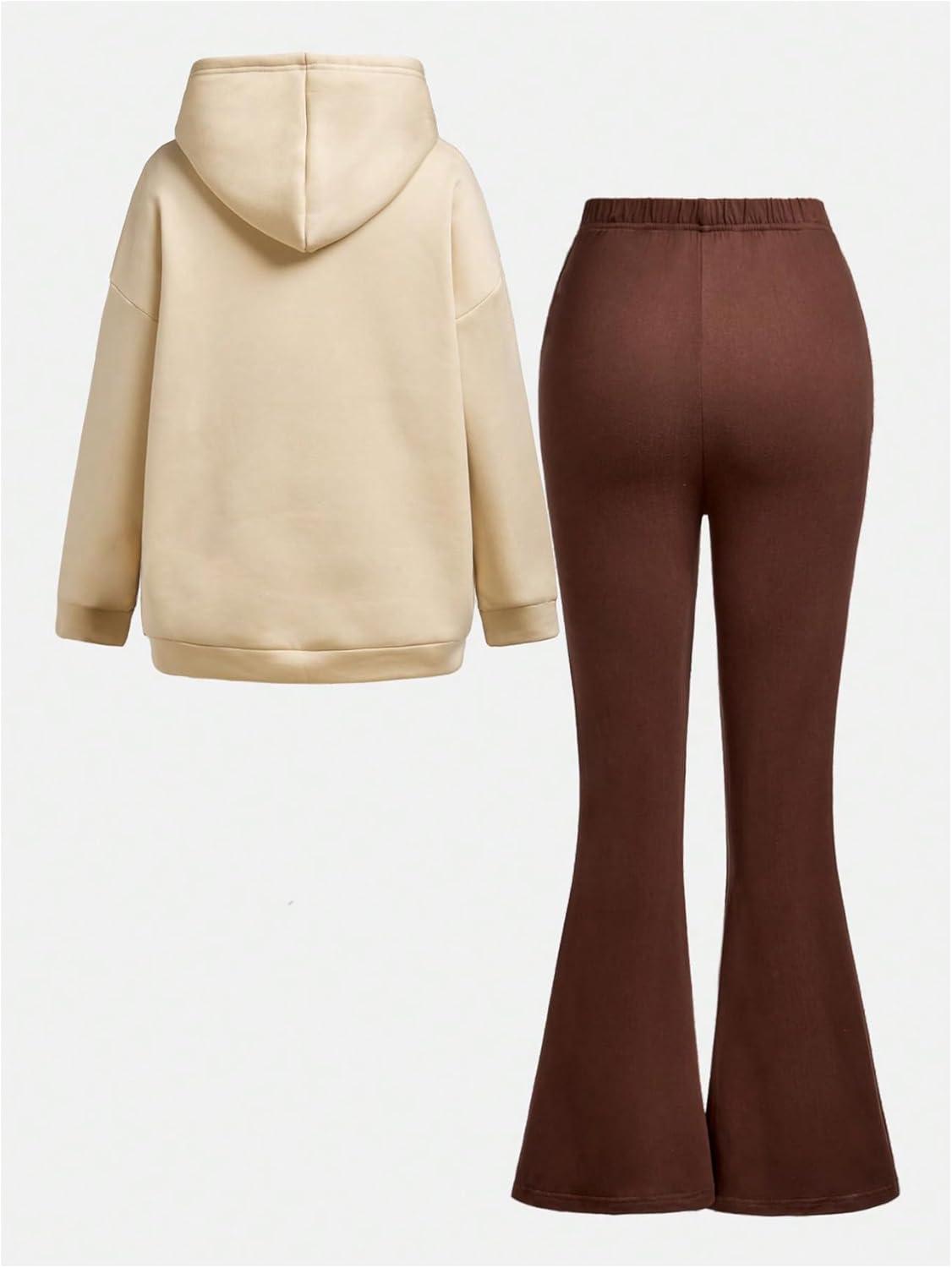 SOLY HUX Girl’s Sweatsuit Set 2 Piece Long Sleeve Hoodie Sweatshirt and Flared Pants Outfit Fall Clothes(Beige and Brown)