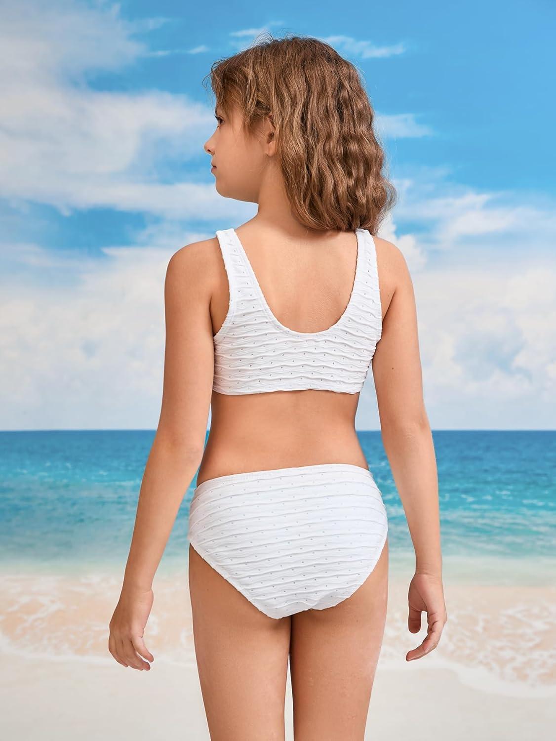 SOLY HUX Girl’s V Neck Ring Linked Bikini Sets Bathing Suits Two Piece Swimsuit(Pure White)