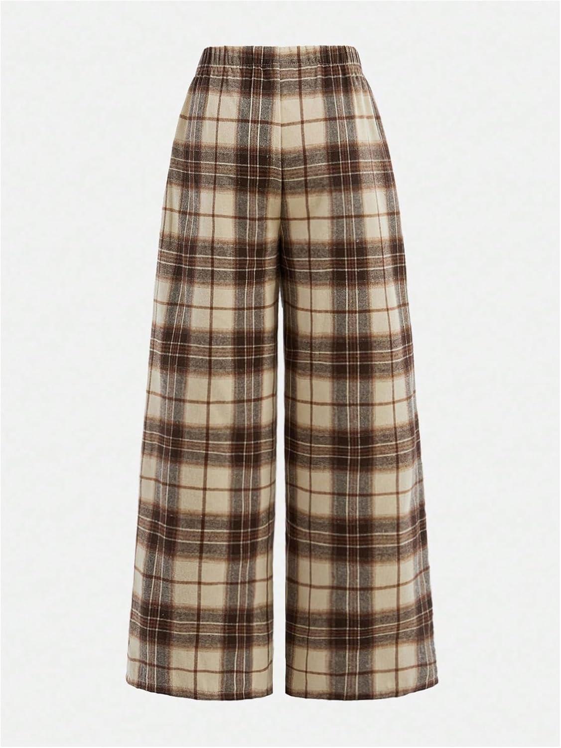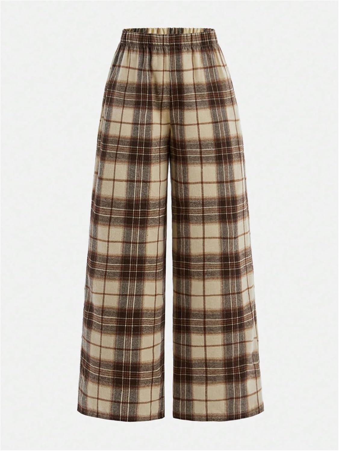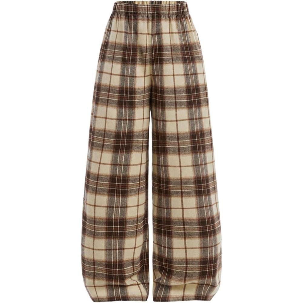 SOLY HUX Girl’s Wide Leg Plaid Pants Elastic Waist Casual Baggy Sweatpants Fall Clothes(Khaki Plaid)