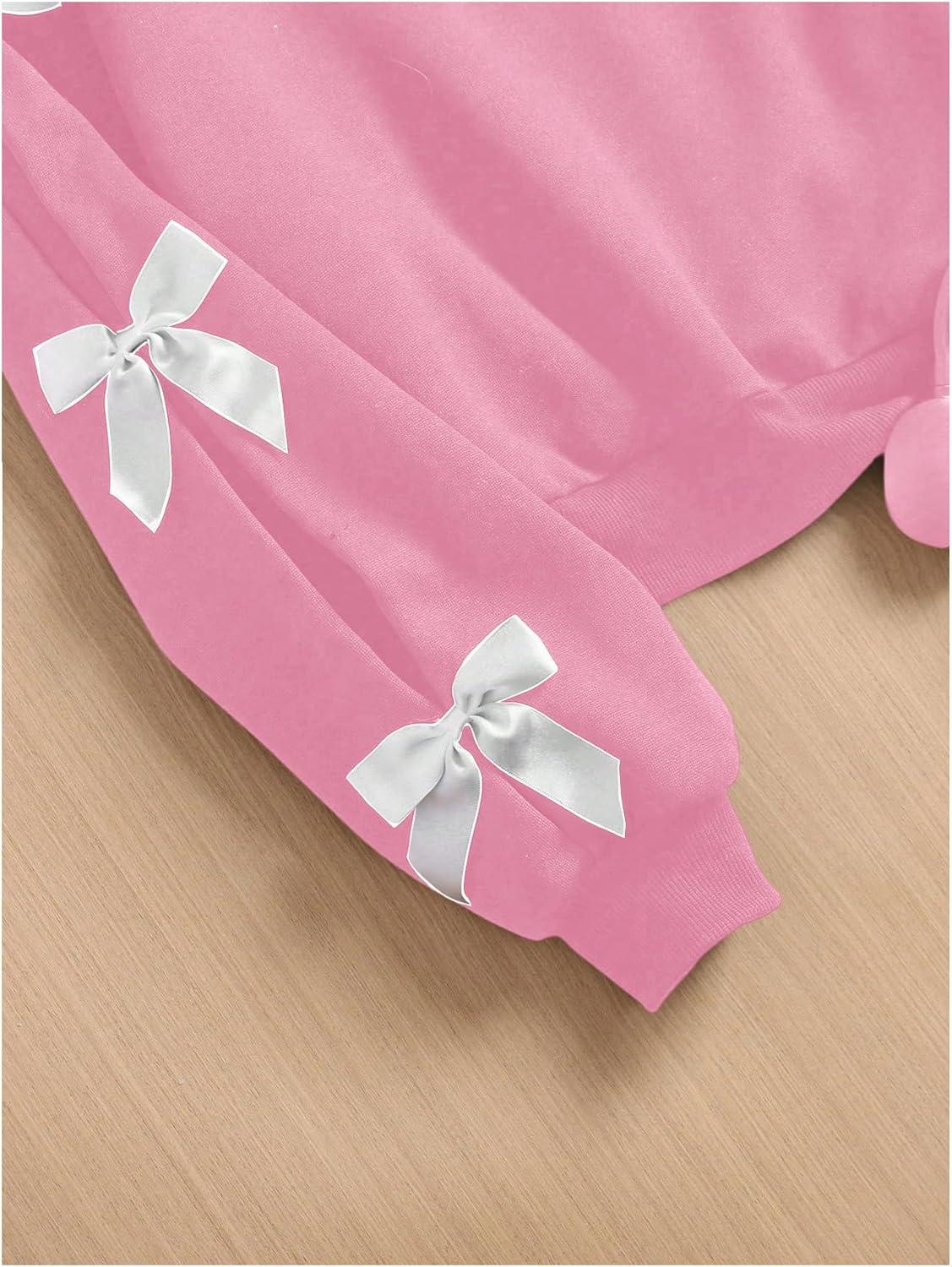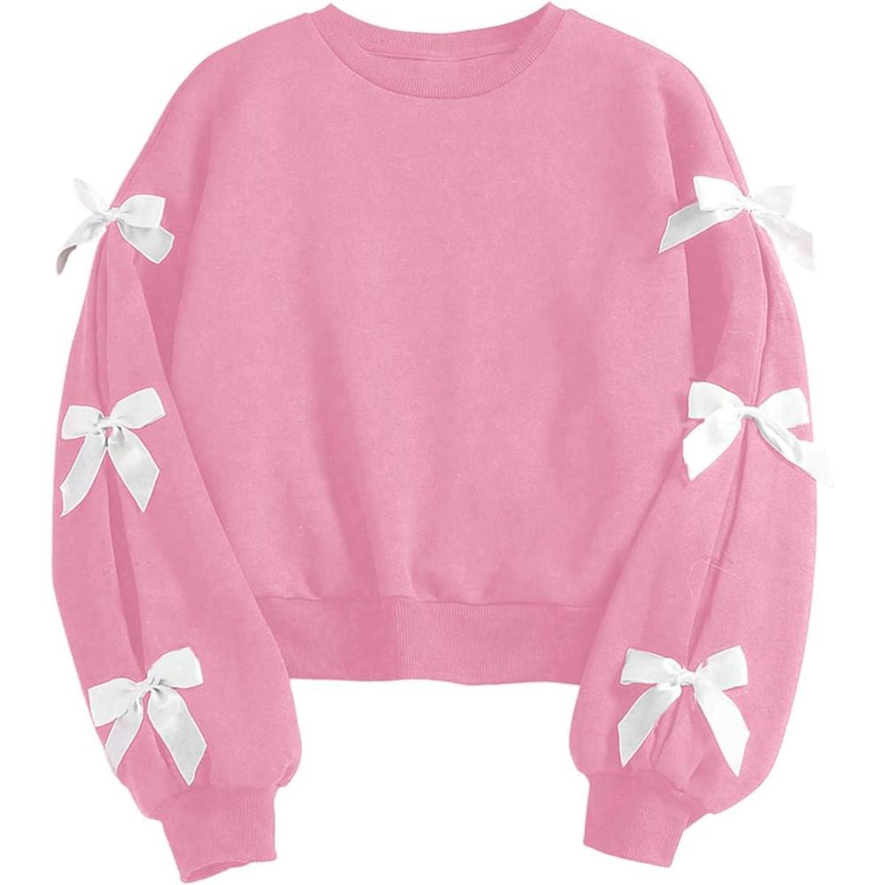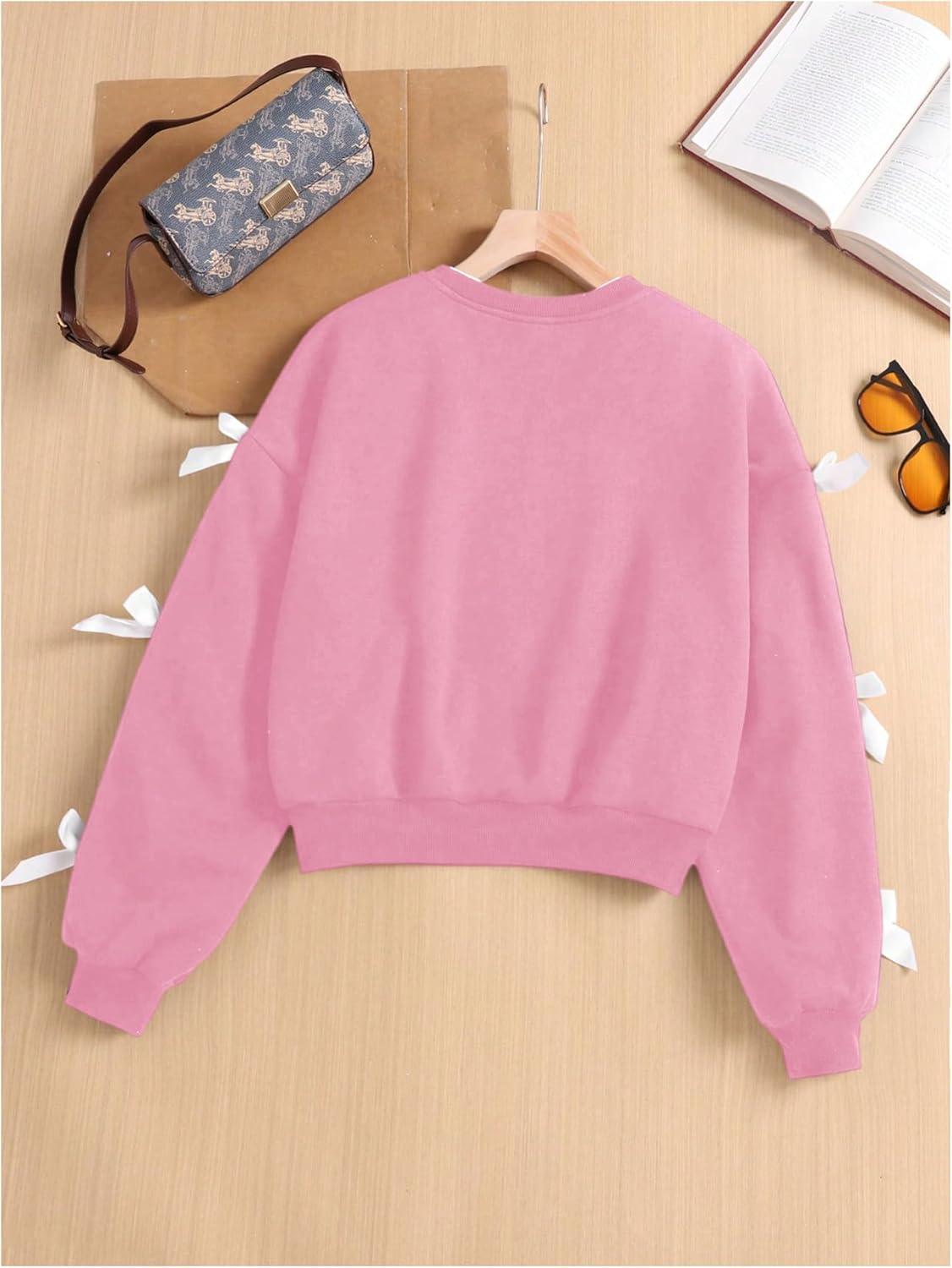 SOLY HUX Girl’s Y2k Bow Sweatshirt Crew Neck Drop Shoulder Long Sleeve Cute Pullover Tops(Pure Pink)