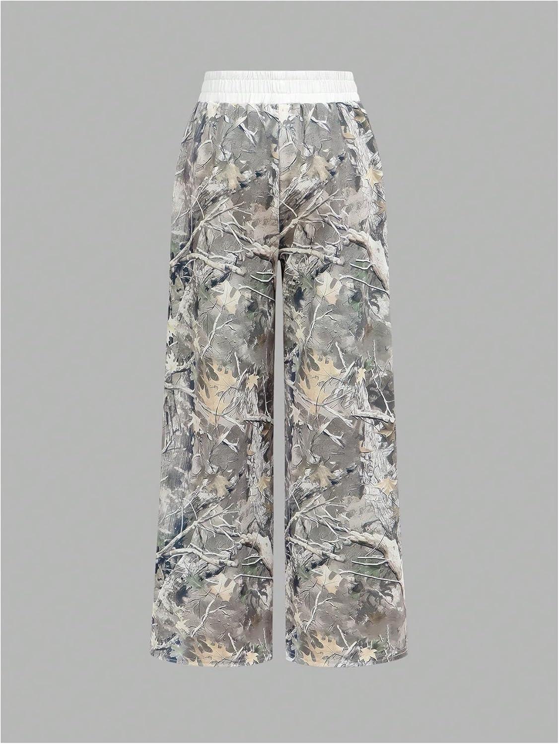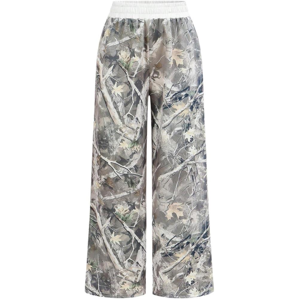 imageSOLY HUX Girls Y2k Camo Sweatpants Elastic Waist Wide Leg Baggy Pants with Pockets StreetwearArmy Green Maple Leaf