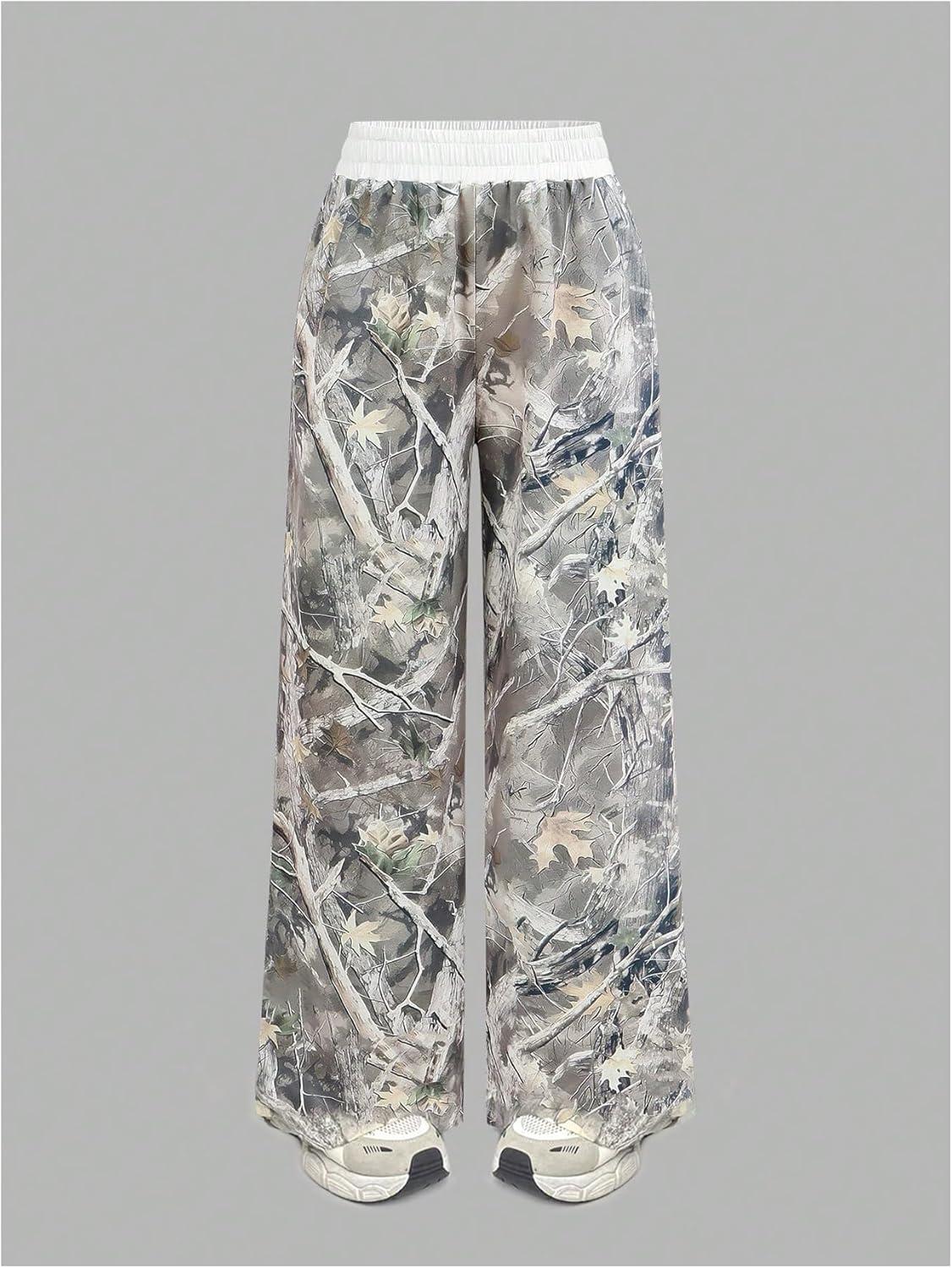 SOLY HUX Girl’s Y2k Camo Sweatpants Elastic Waist Wide Leg Baggy Pants with Pockets Streetwear(Army Green Maple Leaf)