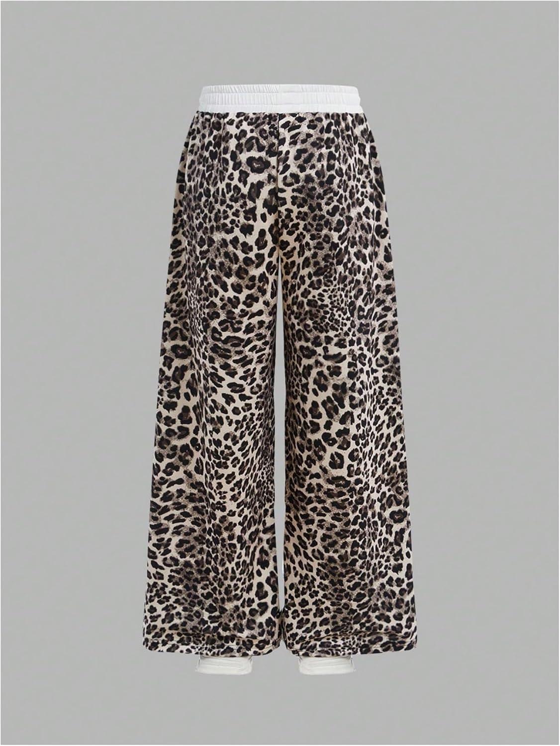 SOLY HUX Girl’s Y2k Camo Sweatpants Elastic Waist Wide Leg Baggy Pants with Pockets Streetwear(Multicolor Leopard)