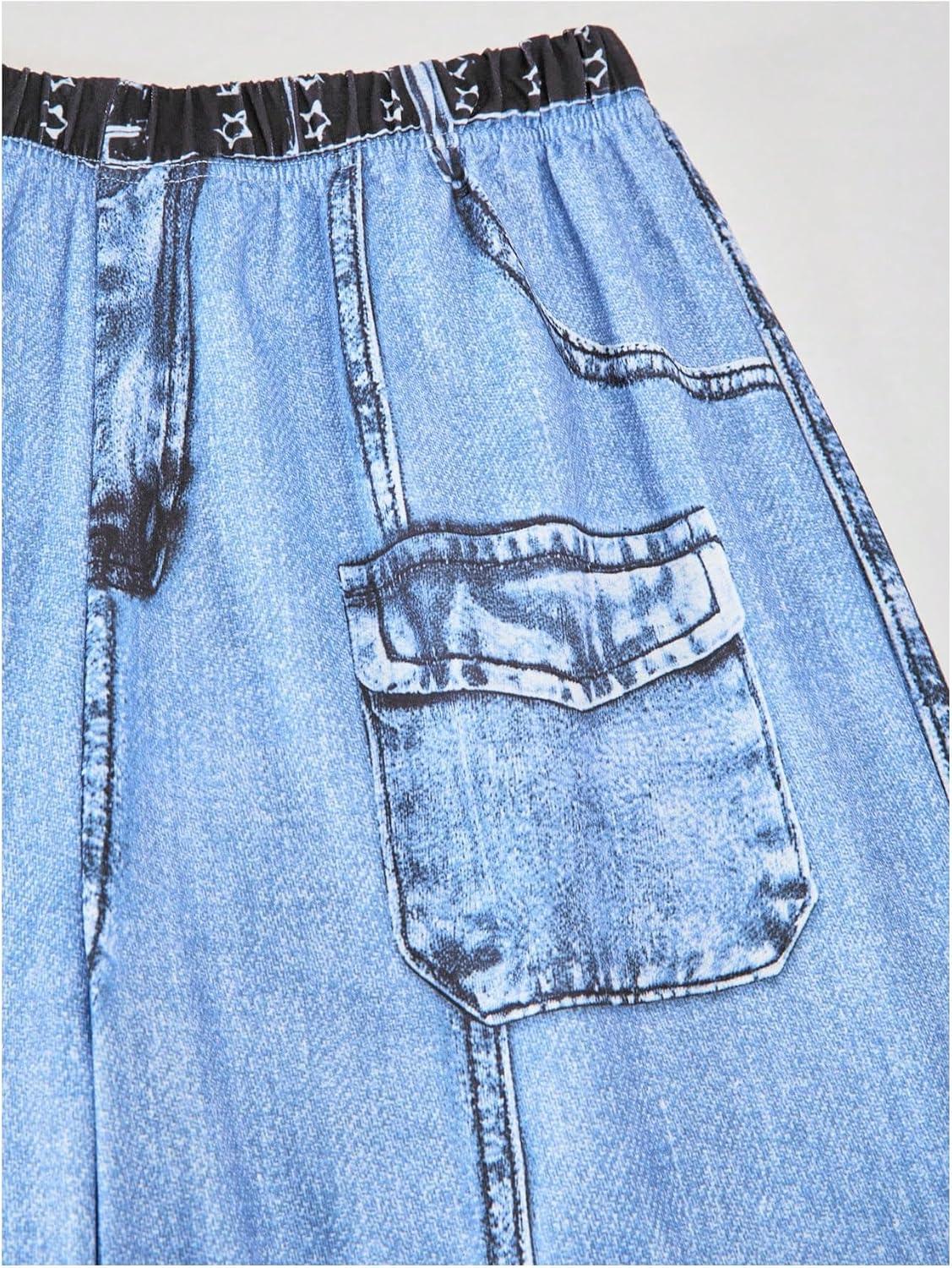 SOLY HUX Girl’s Y2k Clothes Star Graphic Crop Top and Baggy Pants Grunge 2 Piece Outfit Streetwear(White Blue Star)