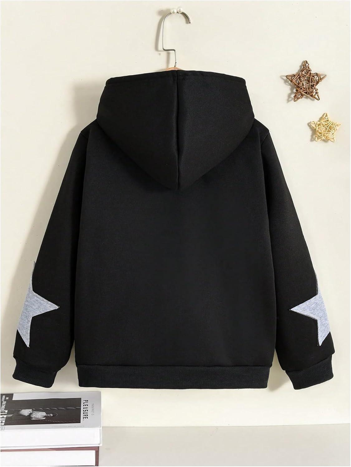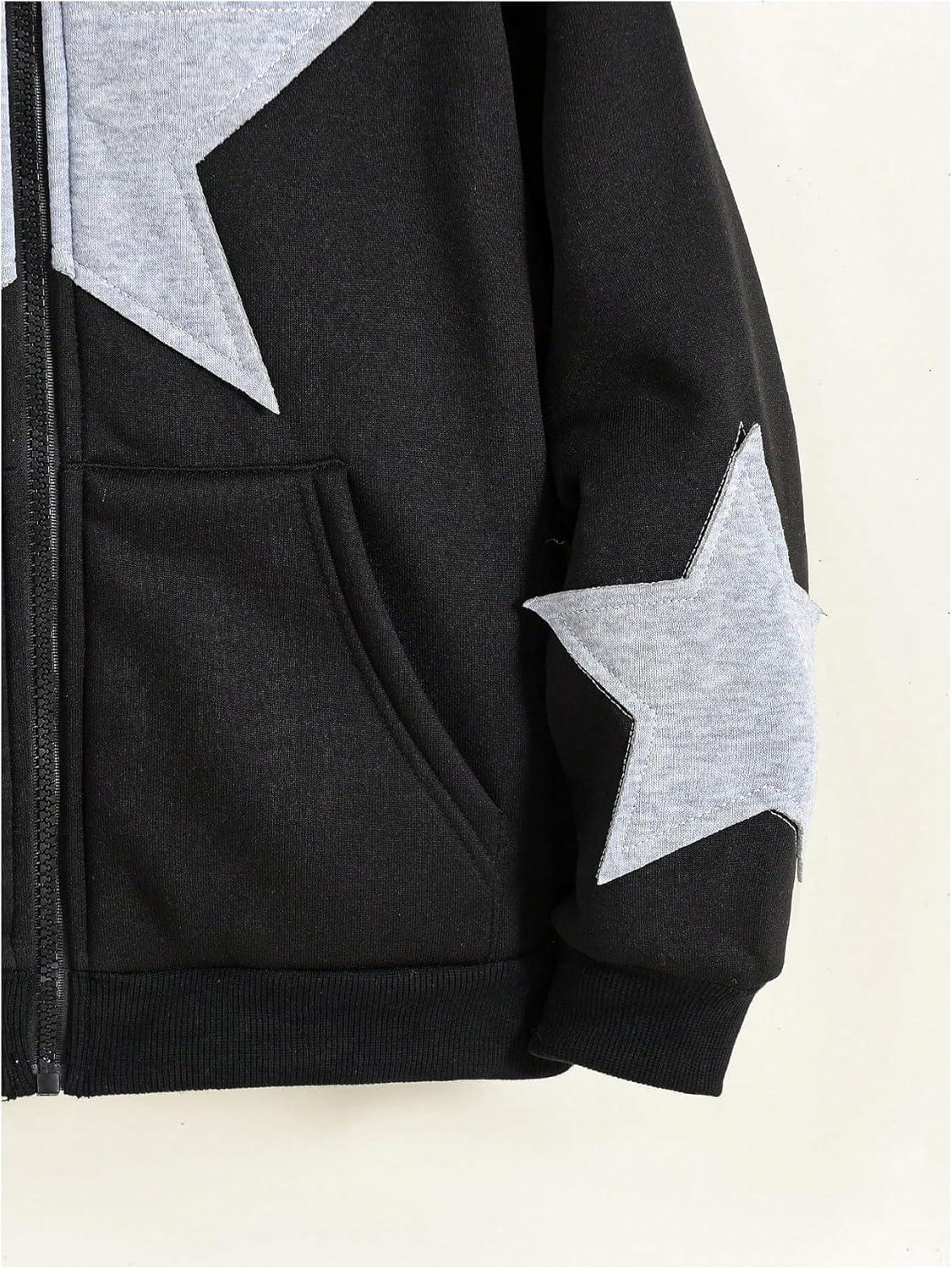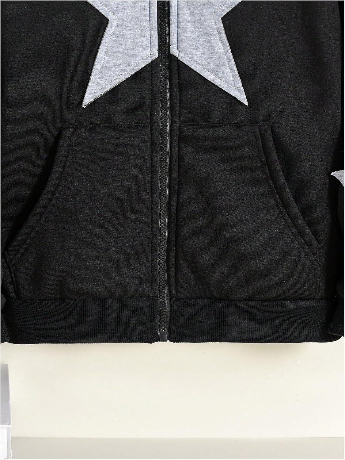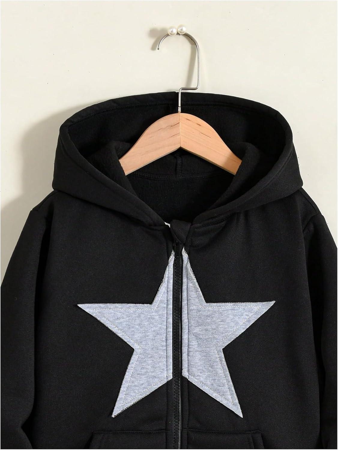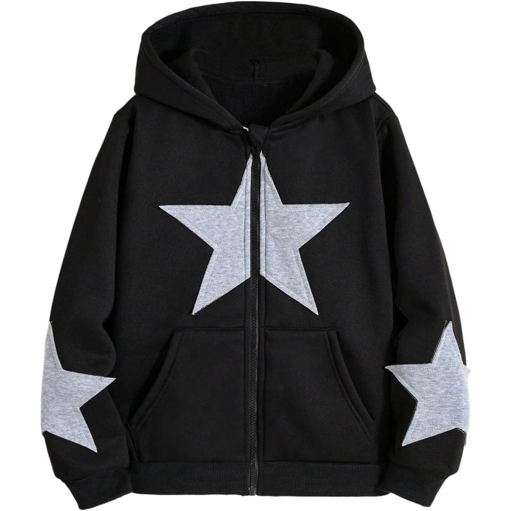 SOLY HUX Girl’s Y2k Zip Up Hoodies Star Graphic Hooded Sweatshirt Casual Jackets Streetwear(Black Star)