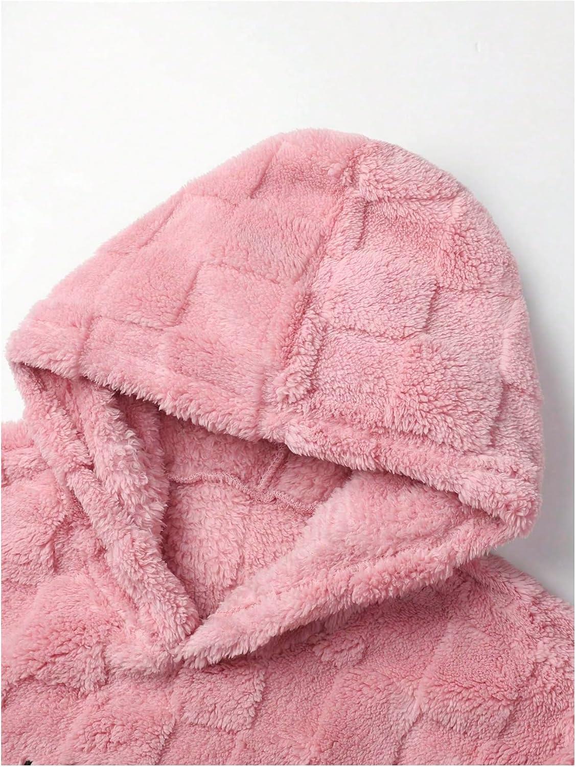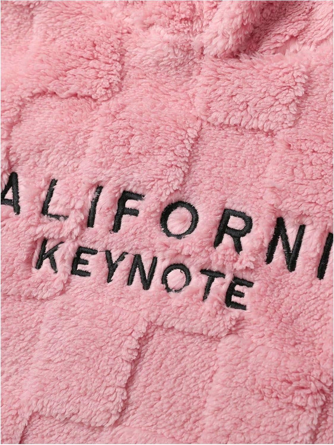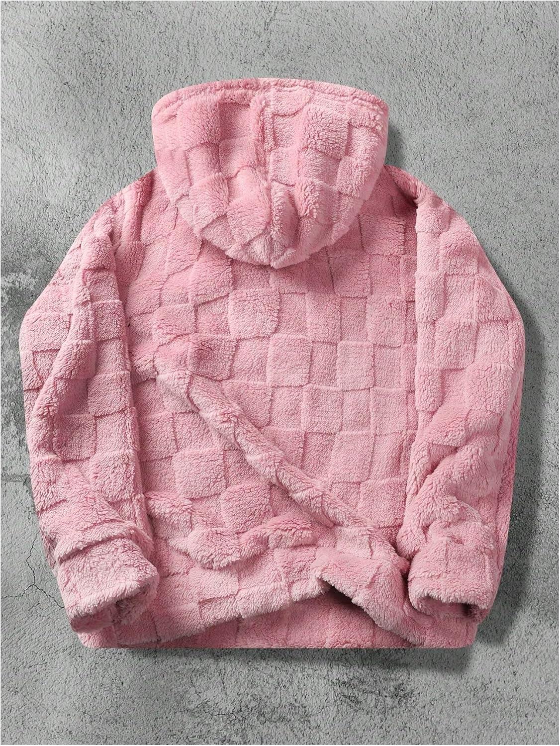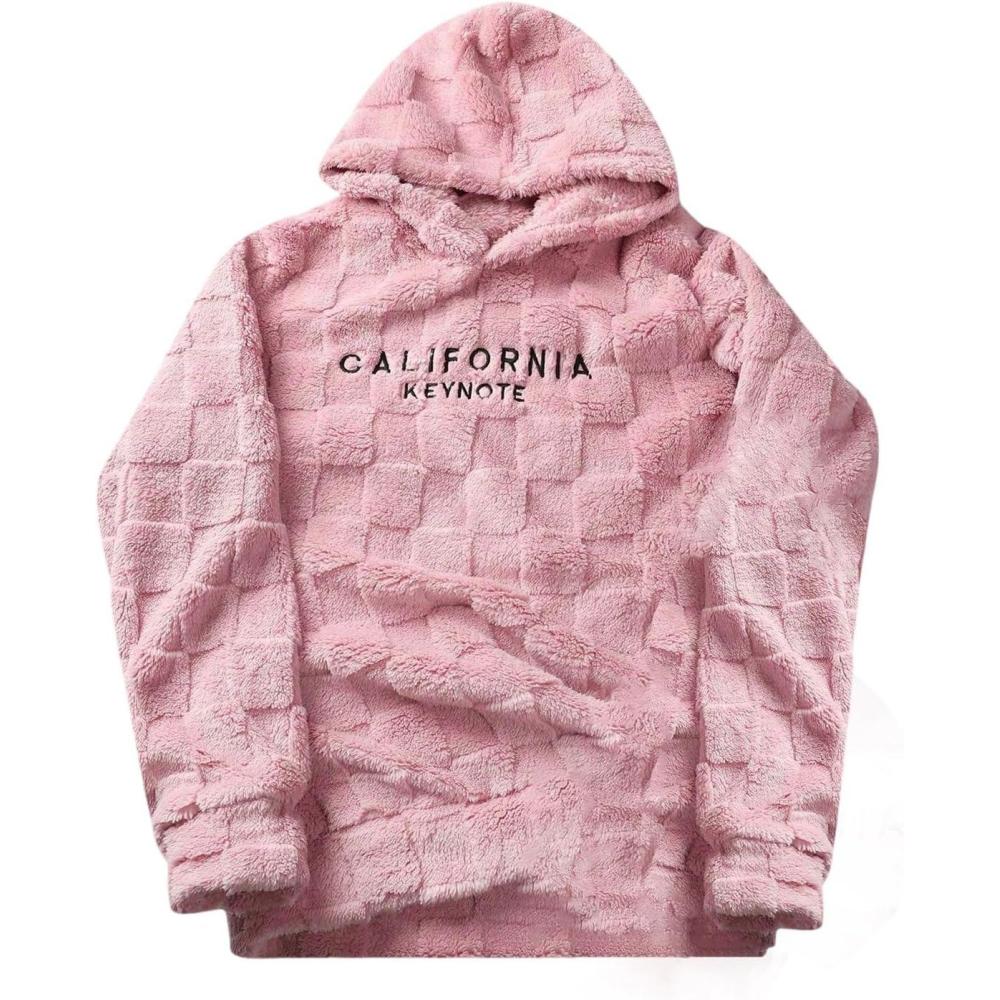 SOLY HUX Hoodies for Men Fuzzy Sherpa Pullover Letter Graphic Embroidery Long Sleeve Fall Winter Fleece Hooded Sweatshirt(Coral Pink Letter)