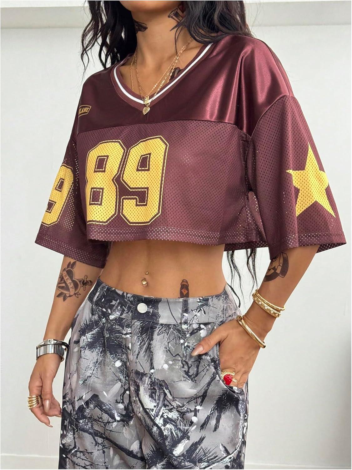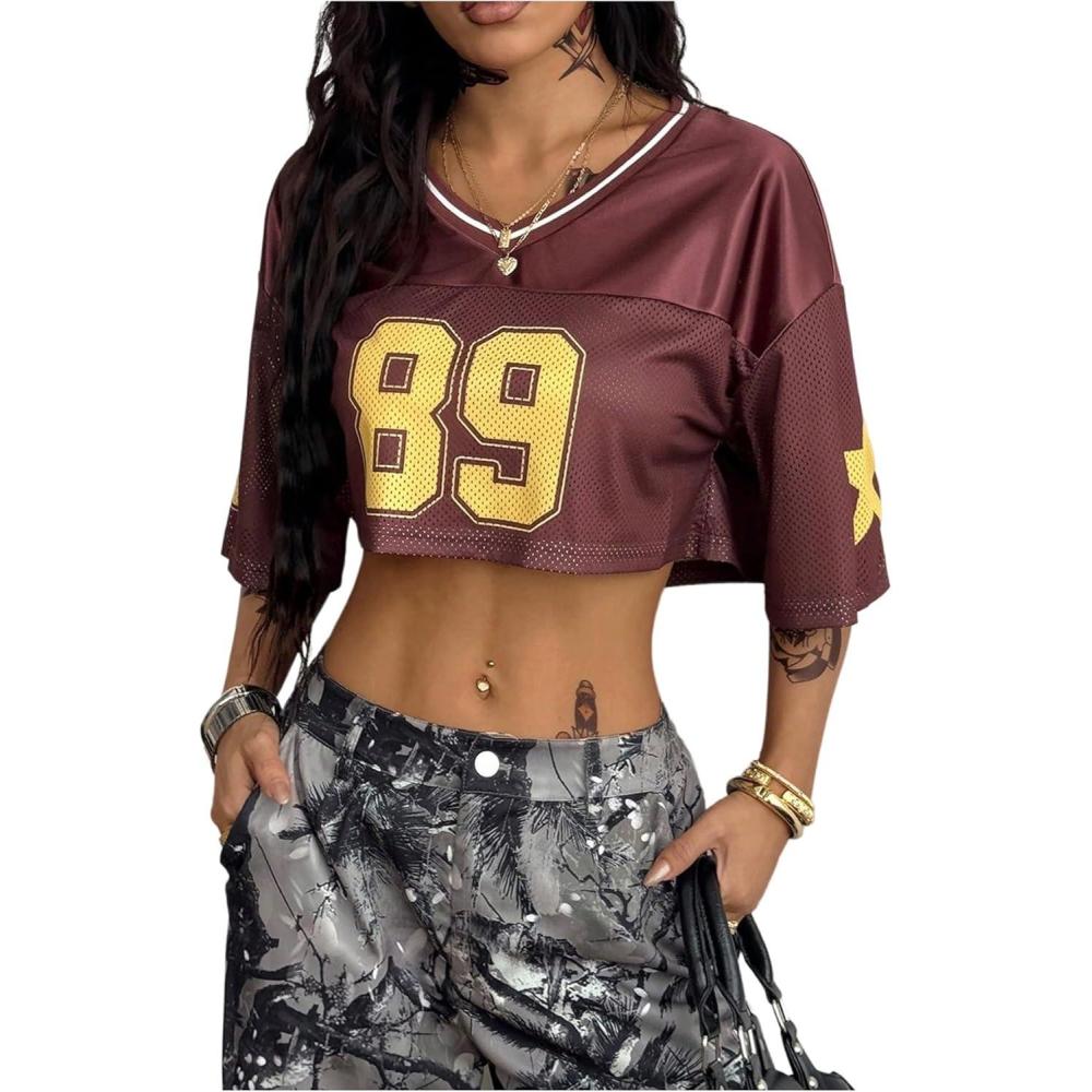 SOLY HUX Jersey Shirts for Women Y2k Crop Tops Streetwear Sportswear Short Sleeve T-Shirt Cute Football Jersey Top(Brown 89)