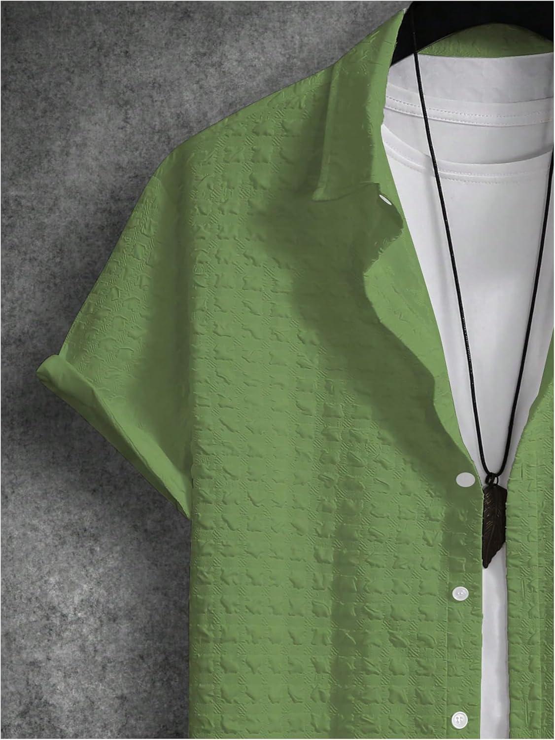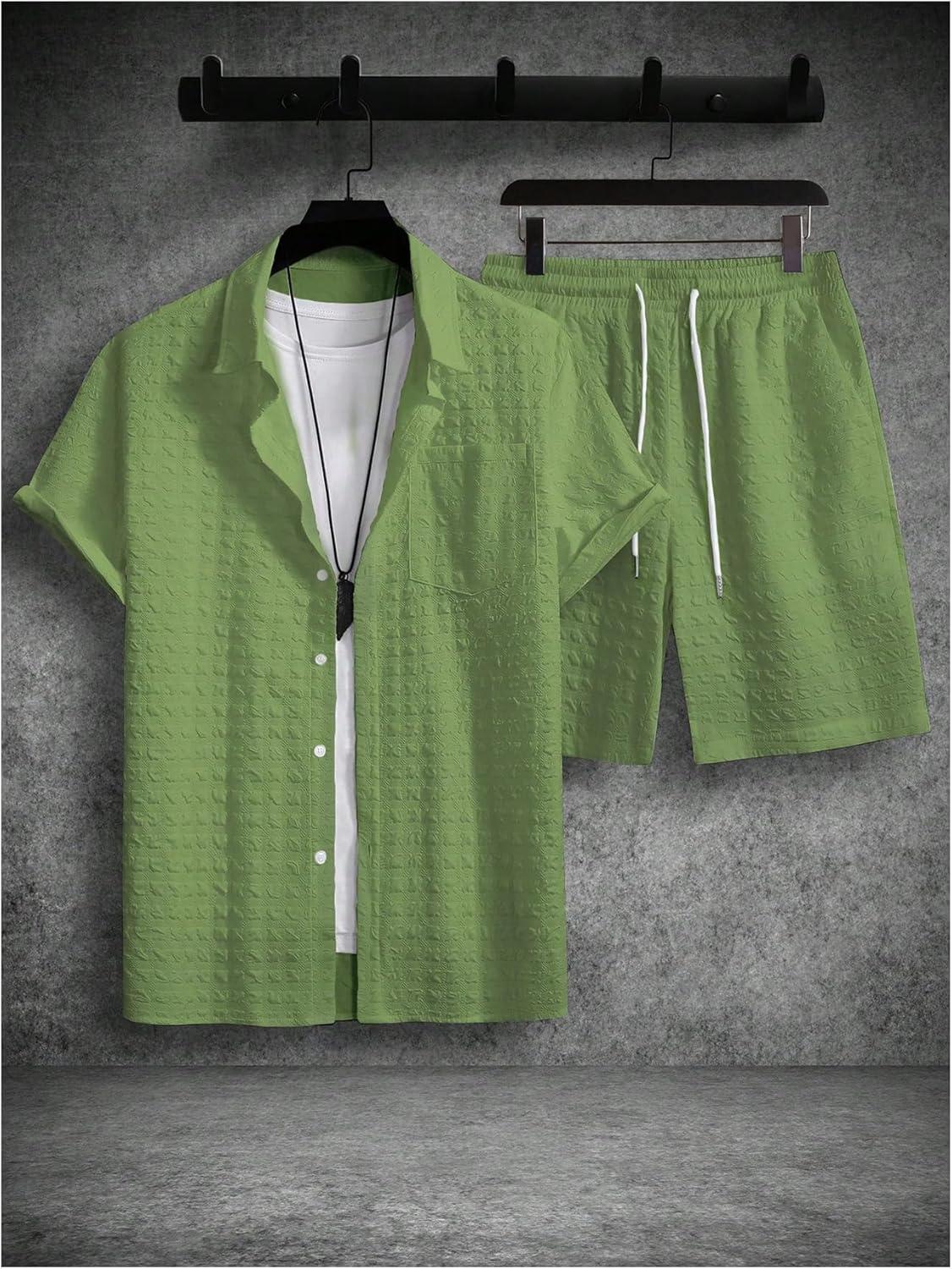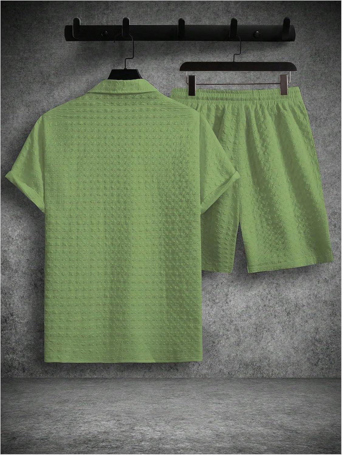 SOLY HUX Men’s 2 Piece Shorts Sets Casual Beach Outfits Short Sleeve Button Down Hawaiian Shirt Sets(Pure Mint Green Textured)