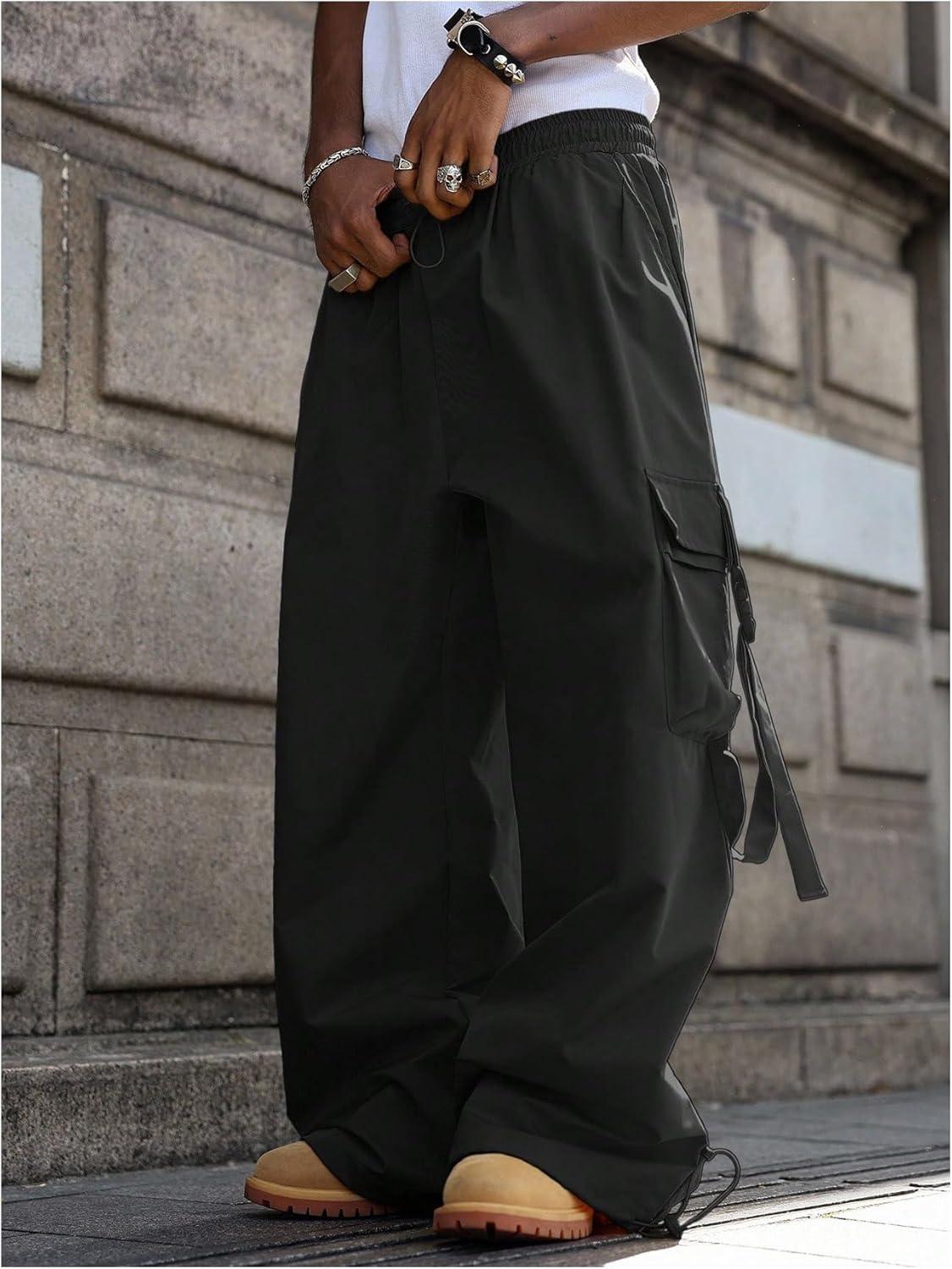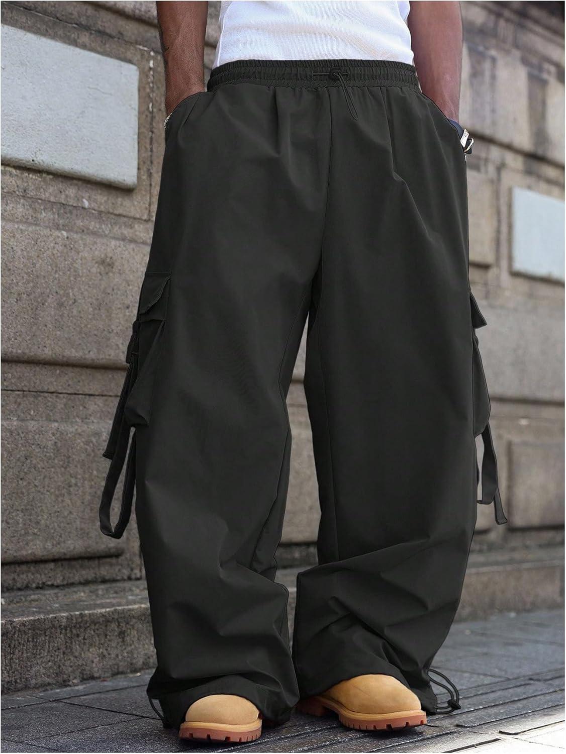 SOLY HUX Men’s Baggy Cargo Pants Wide Leg Parachute Pants with Pocket Streetwear(Plain Black)