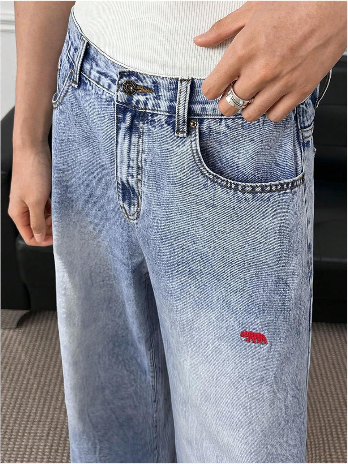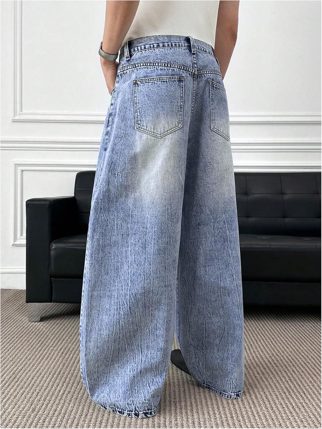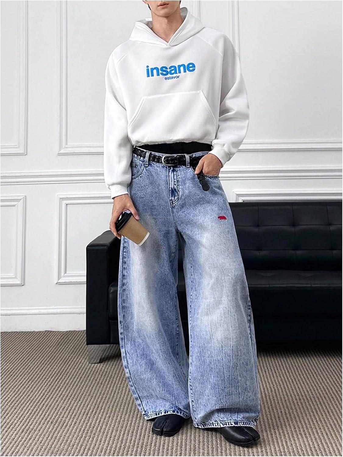 SOLY HUX Men’s Baggy Jeans Vintage Straight Leg Loose Fit Skater Denim Pants Streetwear(Light Wash)