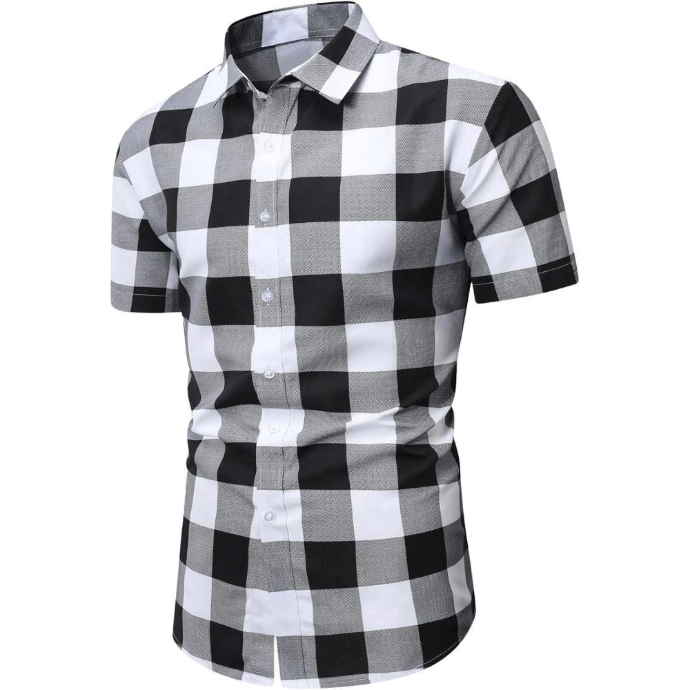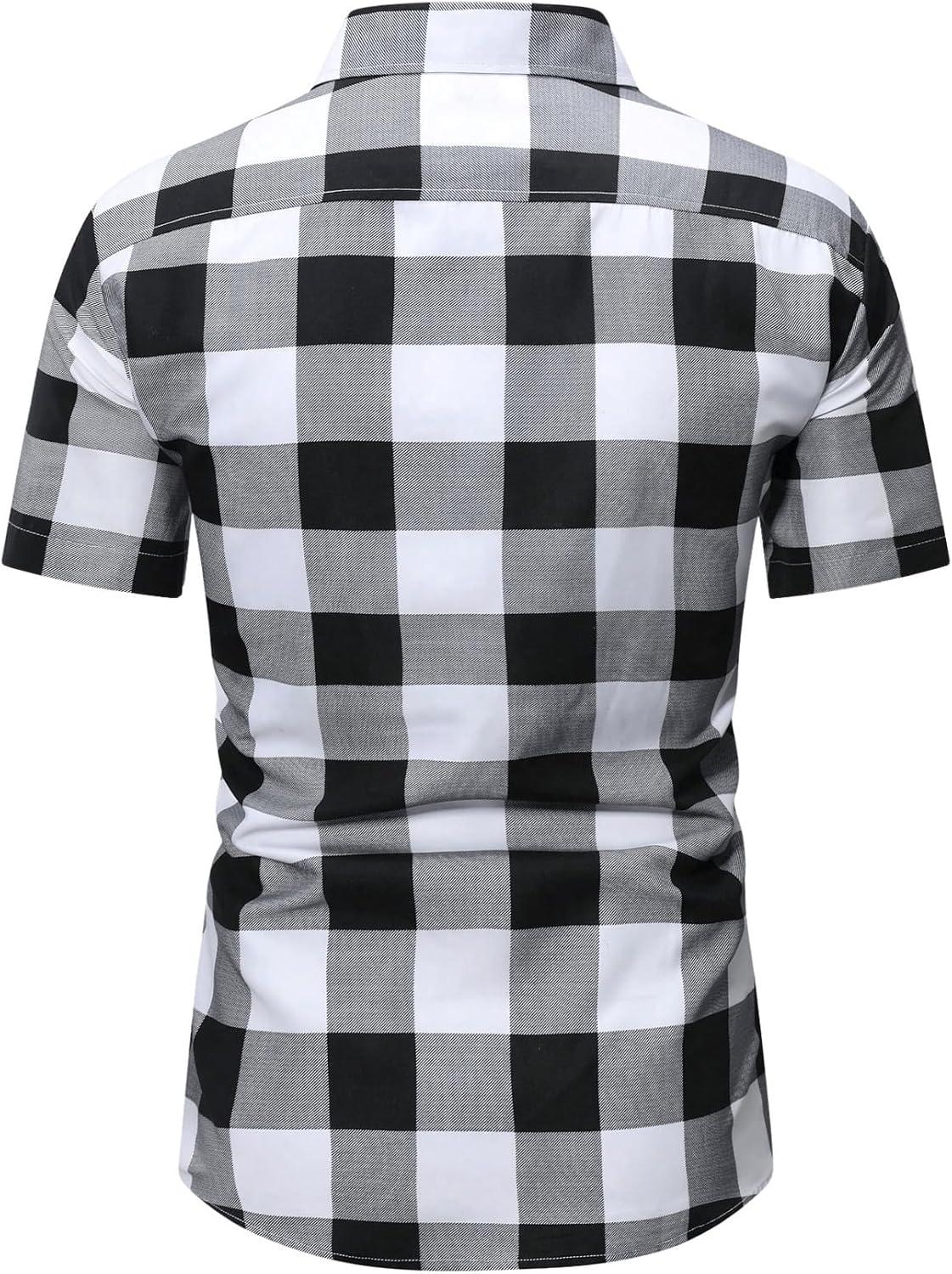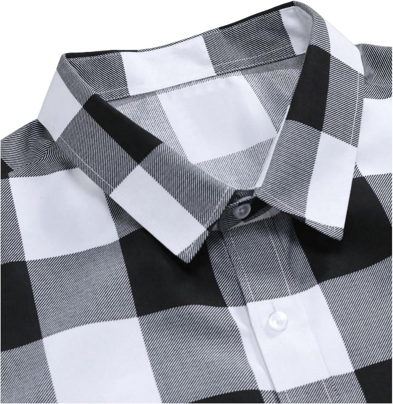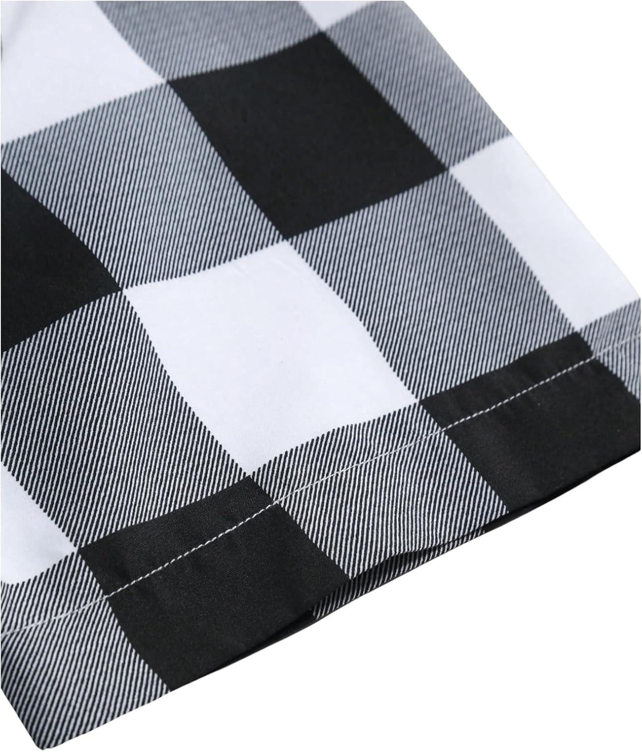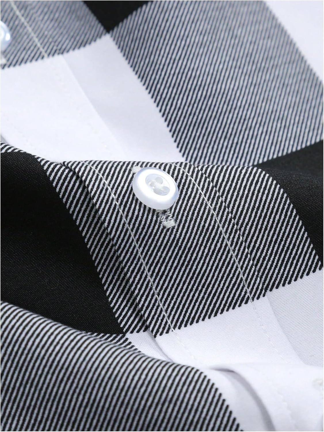 SOLY HUX Men’s Basic Short Sleeve Plaid Shirts Button Down Collared Shirt Casual Work Business Tops(Black and White)