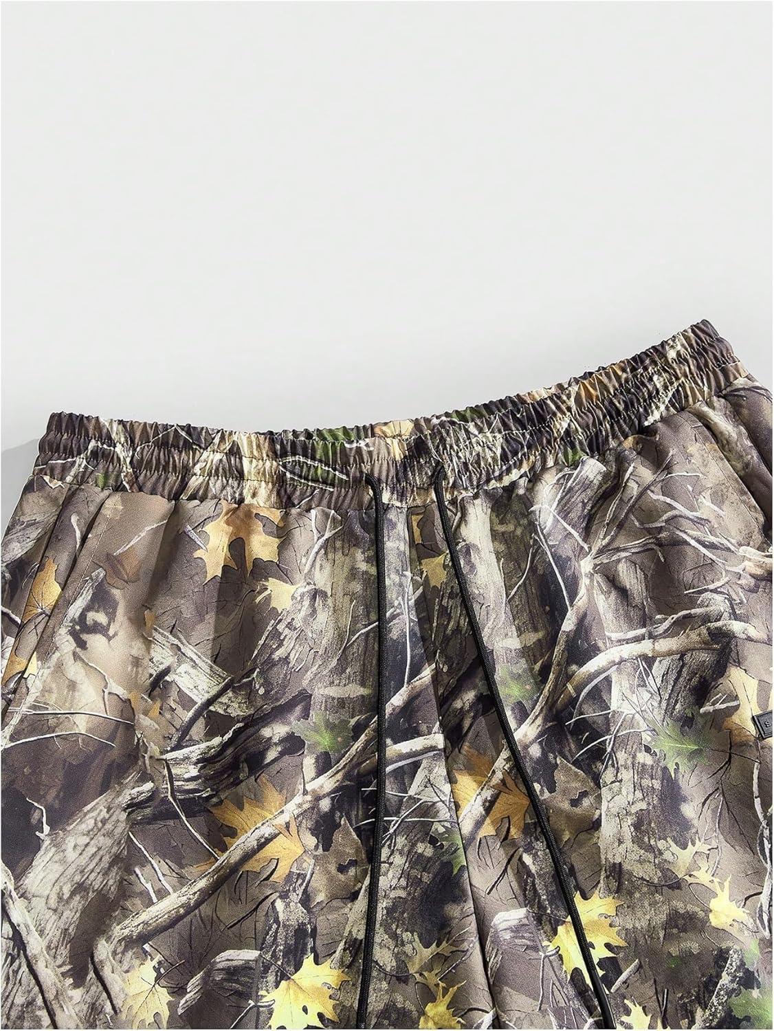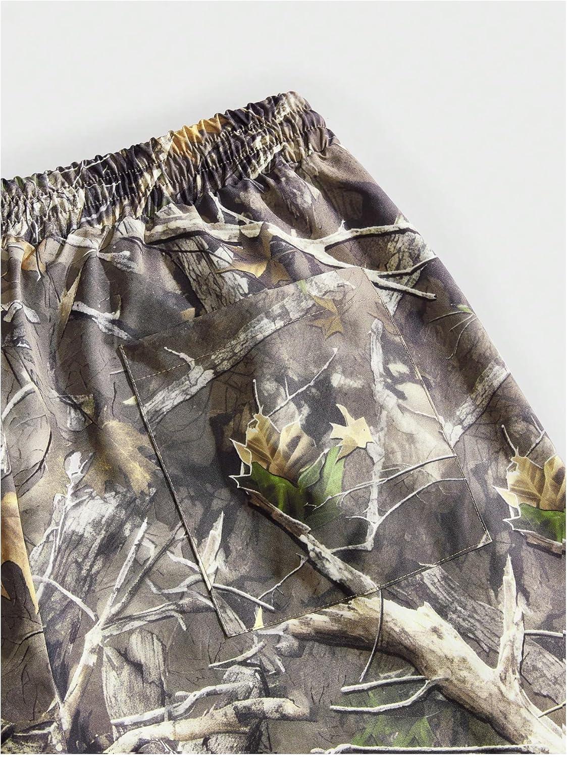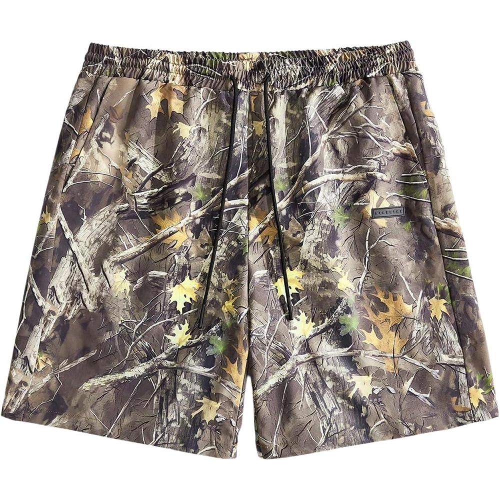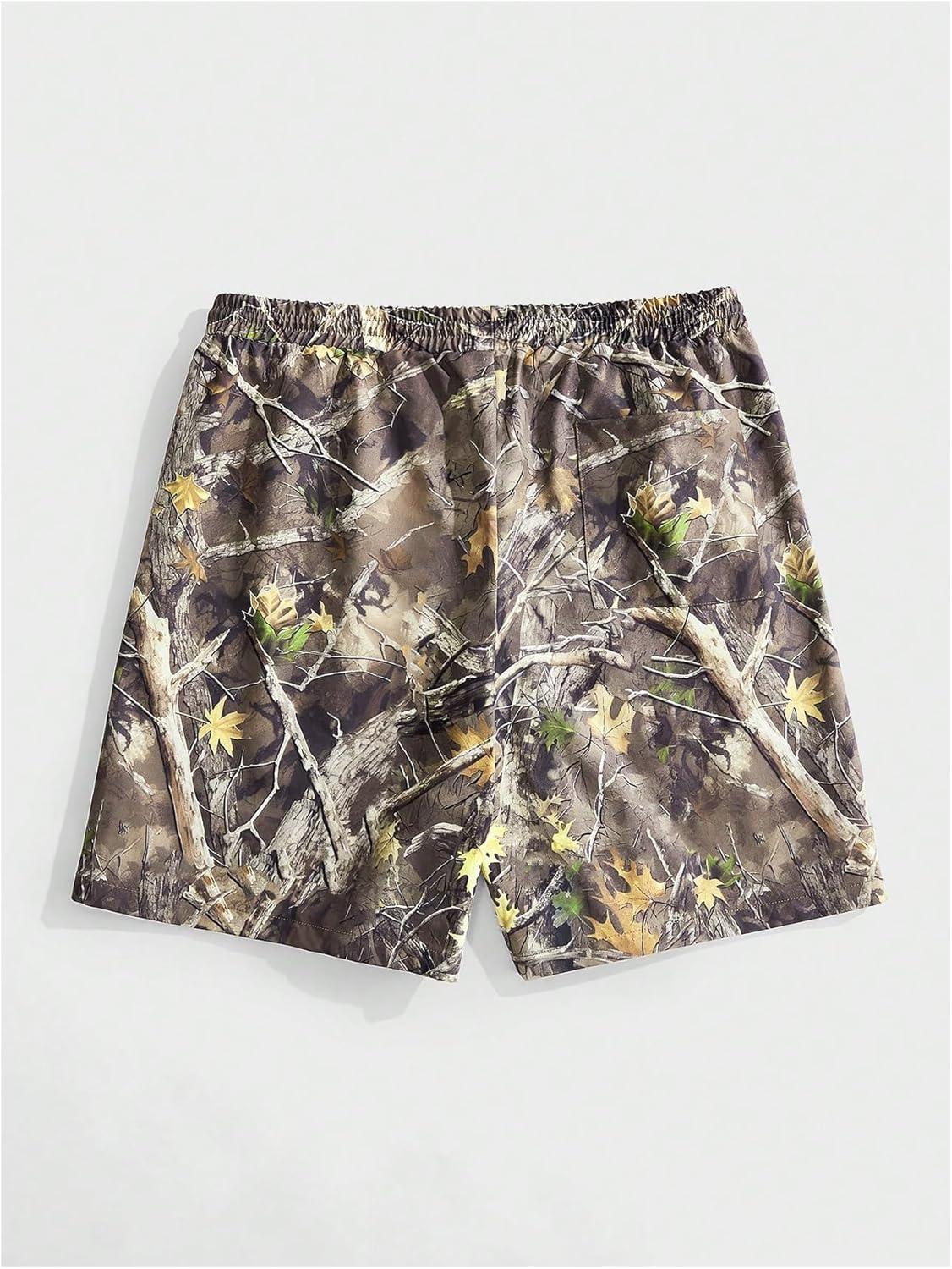 SOLY HUX Men’s Camo Shorts Maple Leaf Print Drawstring Elastic Waist Summer Shorts Streetwear(Army Green Camo)