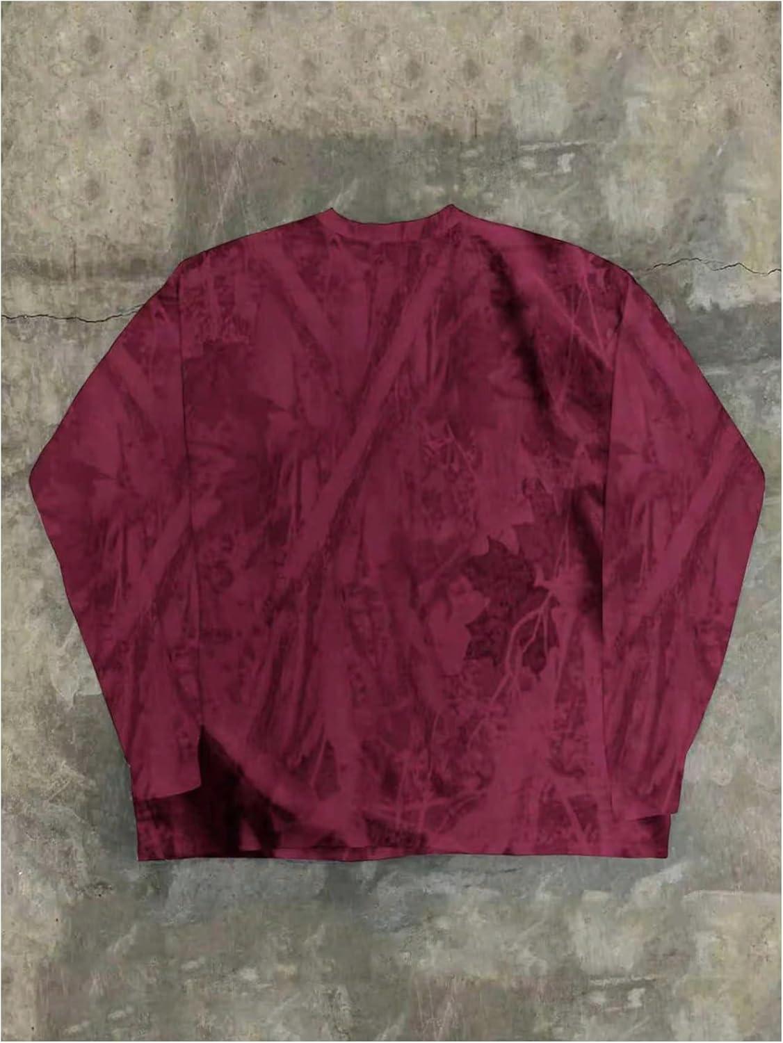 SOLY HUX Men’s Camo T Shirt Long Sleeve Crew Neck Vintage Tee Tops Casual Streetwear Fall Clothes(Burgundy Maple Leaf)