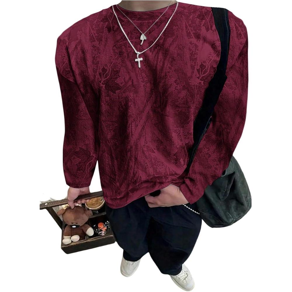 image:imageSOLY HUX Mens Camo T Shirt Long Sleeve Crew Neck Vintage Tee Tops Casual Streetwear Fall ClothesMulticolor Maple Leaf