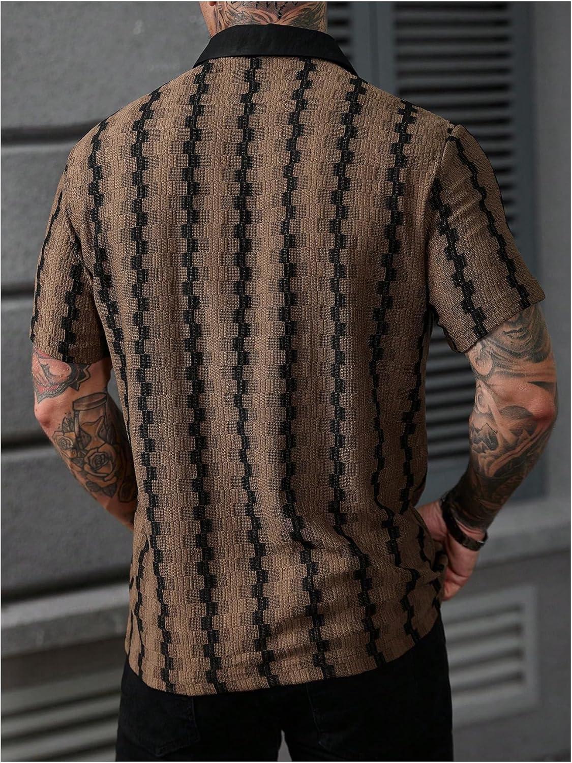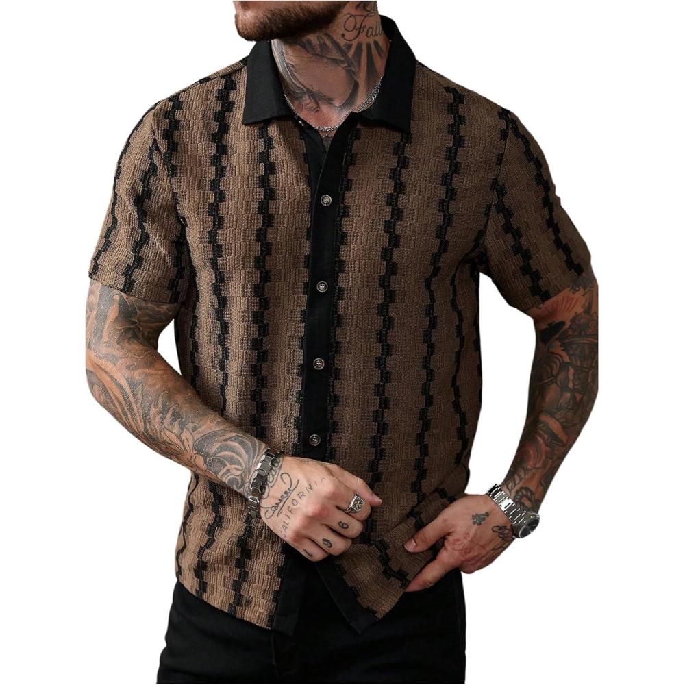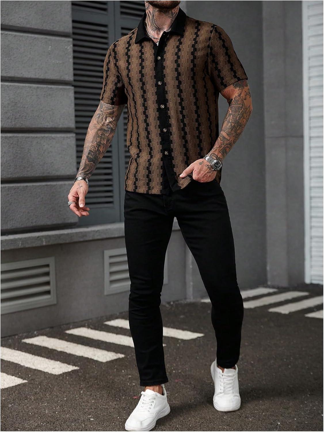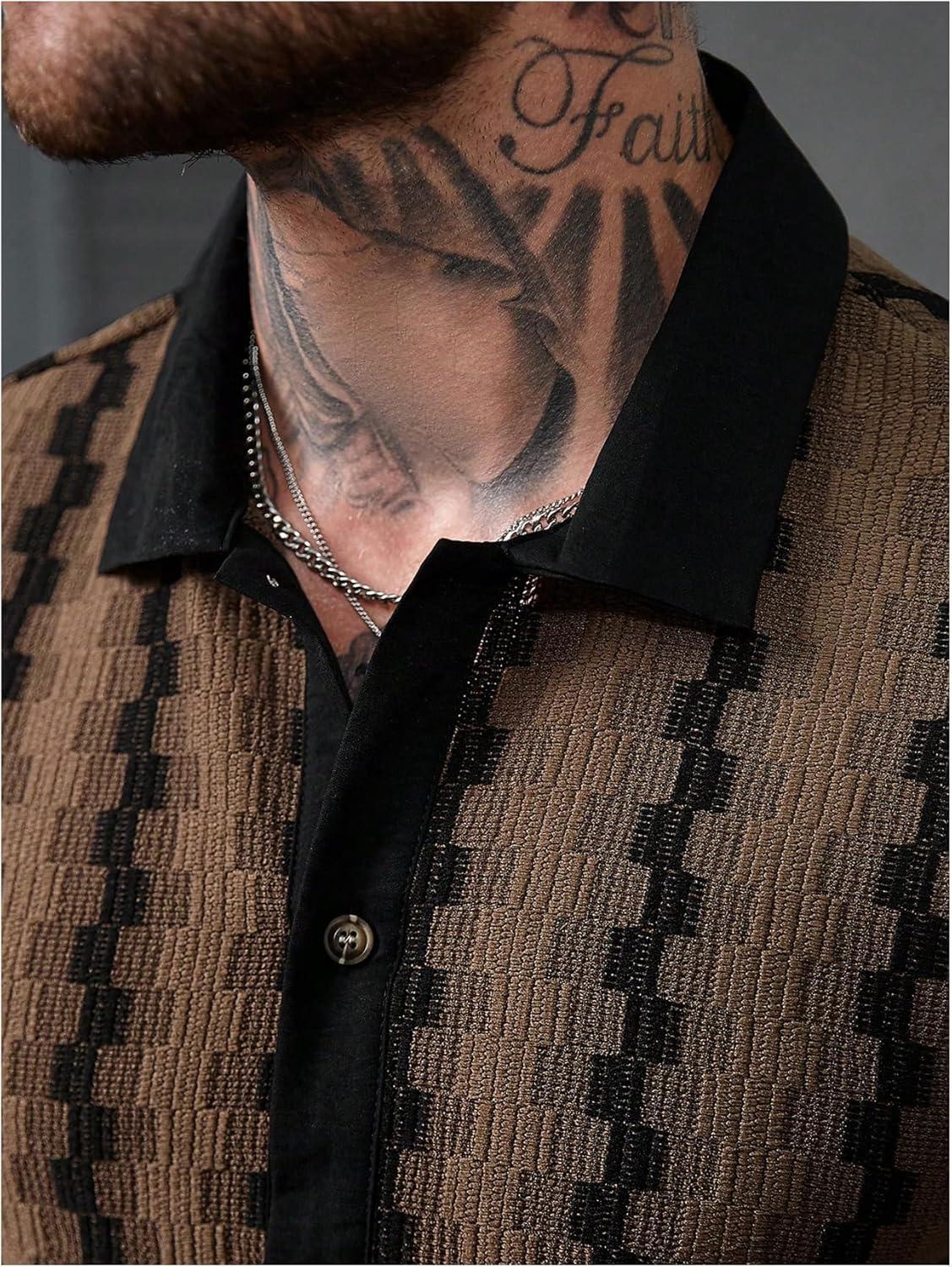 SOLY HUX Men’s Casual Button Down Shirt Textured Short Sleeve Collared Summer Shirts(Plain Coffee Brown)