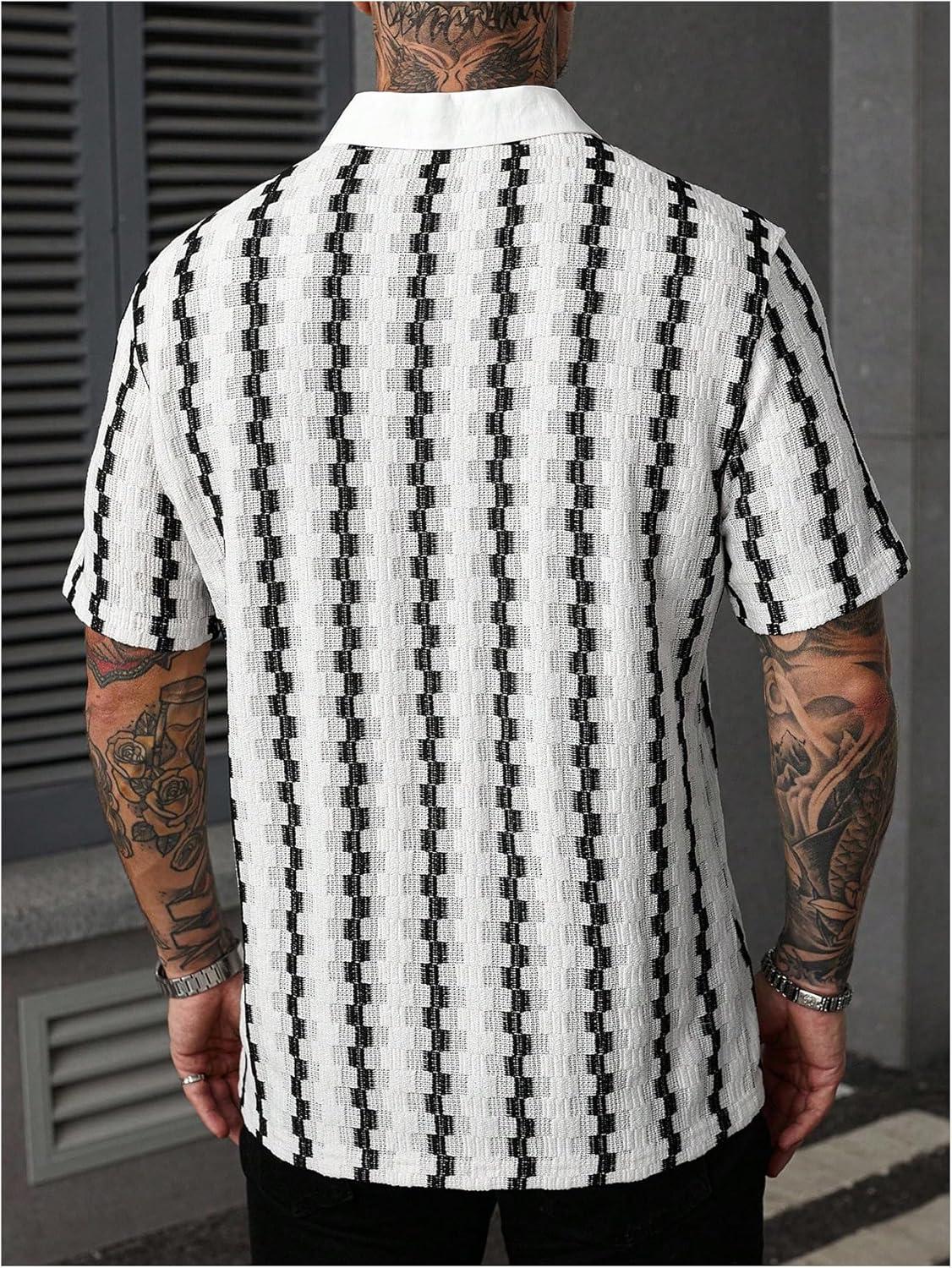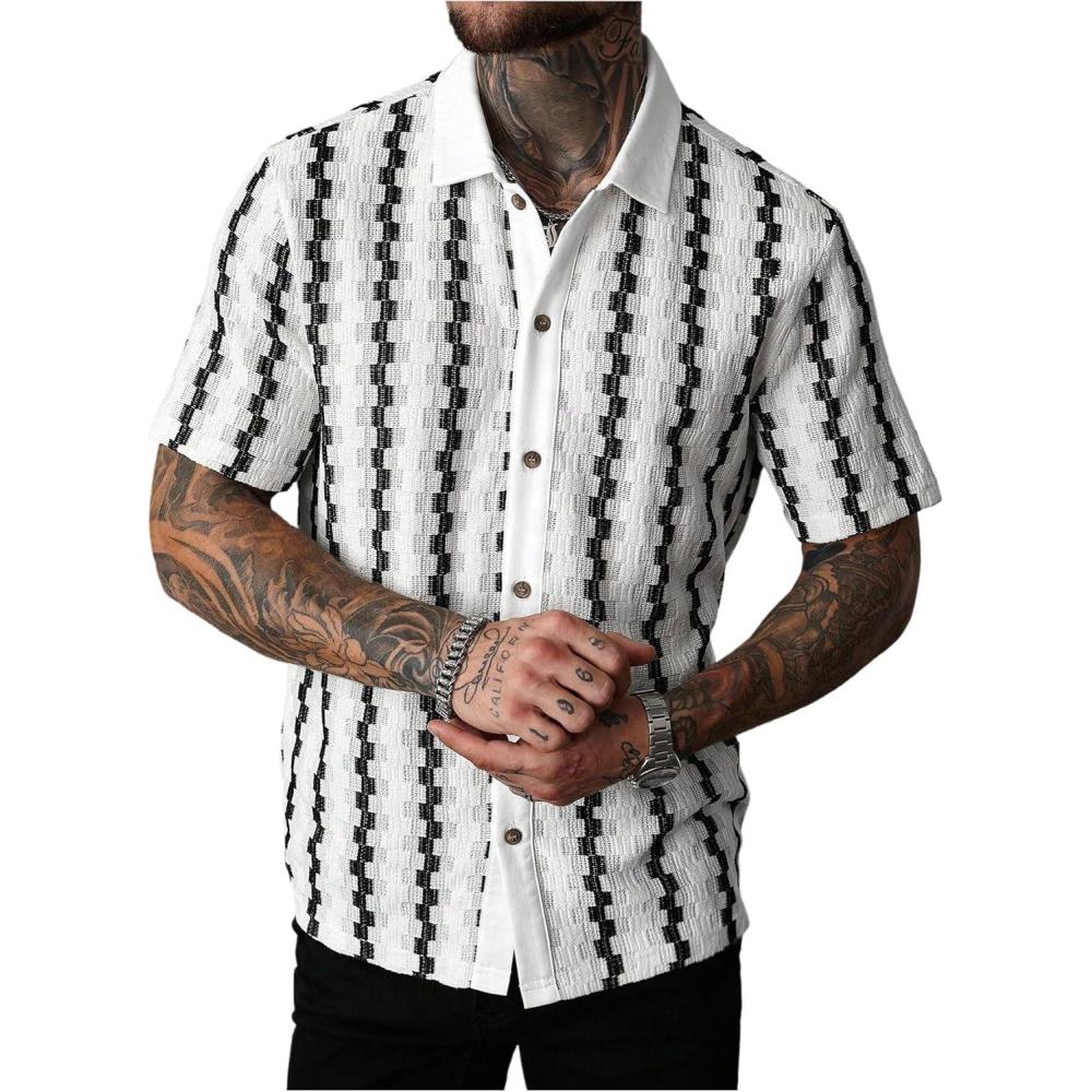 SOLY HUX Men’s Casual Button Down Shirt Textured Short Sleeve Collared Summer Shirts(White)