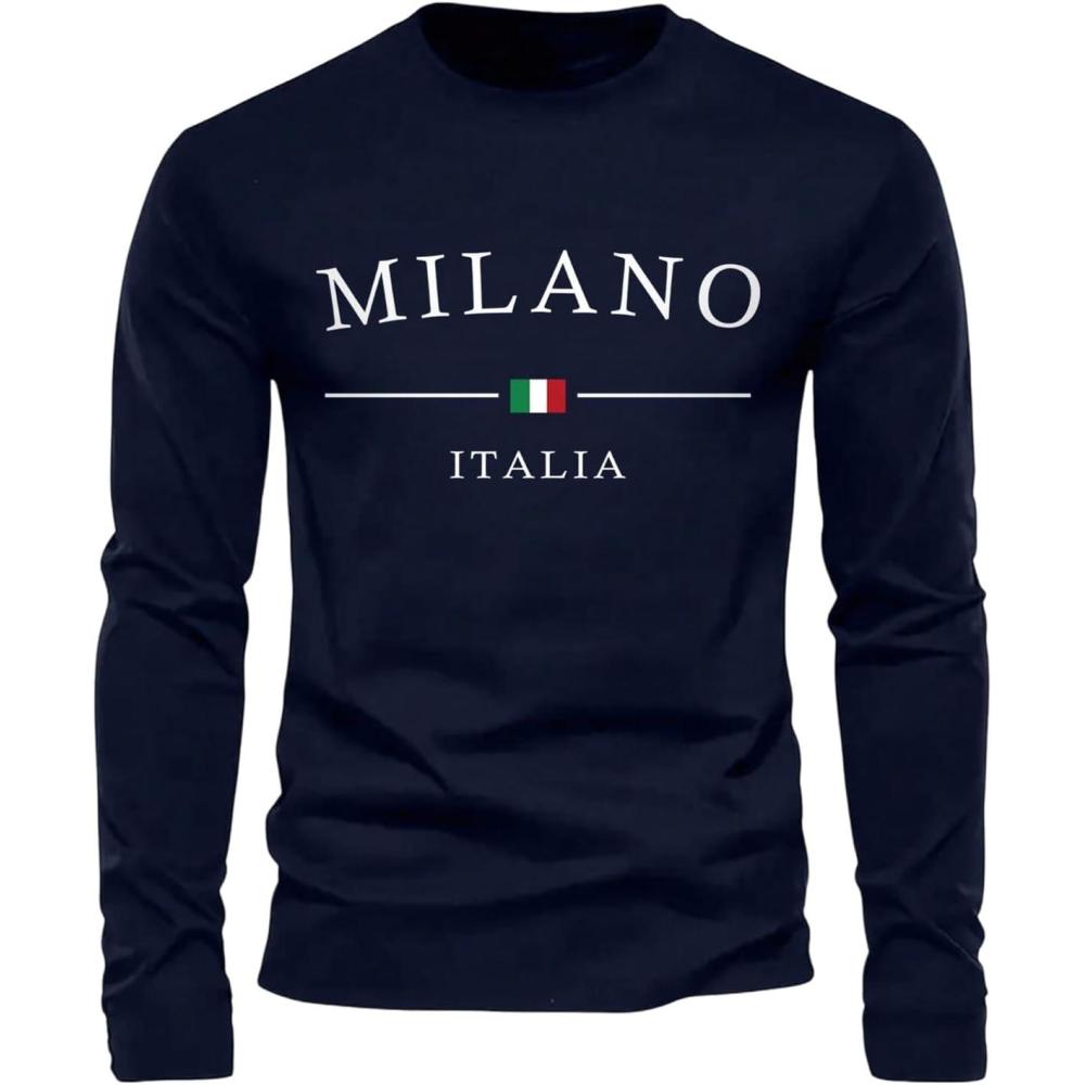 SOLY HUX Men’s Casual Graphic Tees Letter Print T Shirt Long Sleeve Crewneck Casual Tops(Dark Blue Letter)