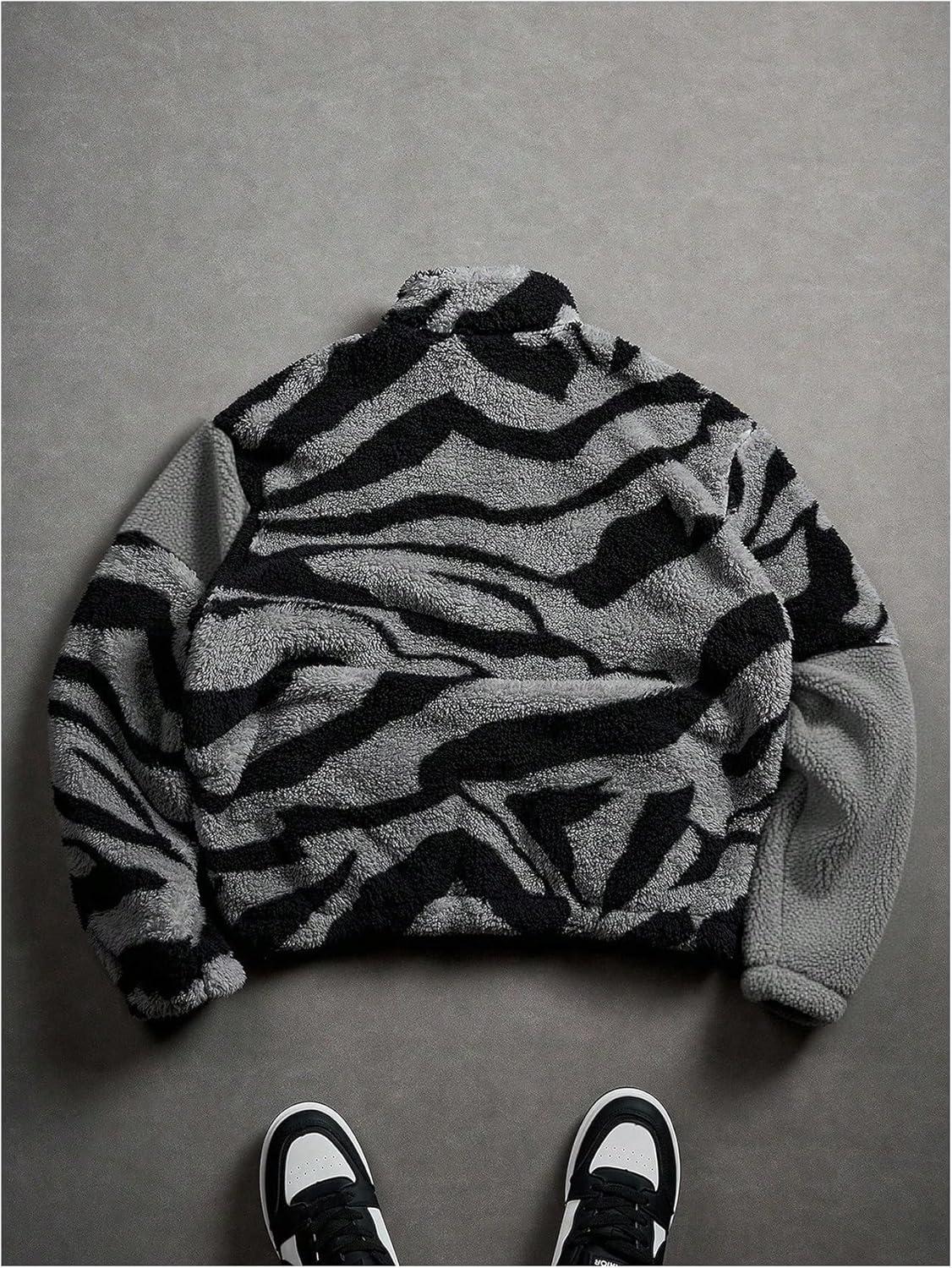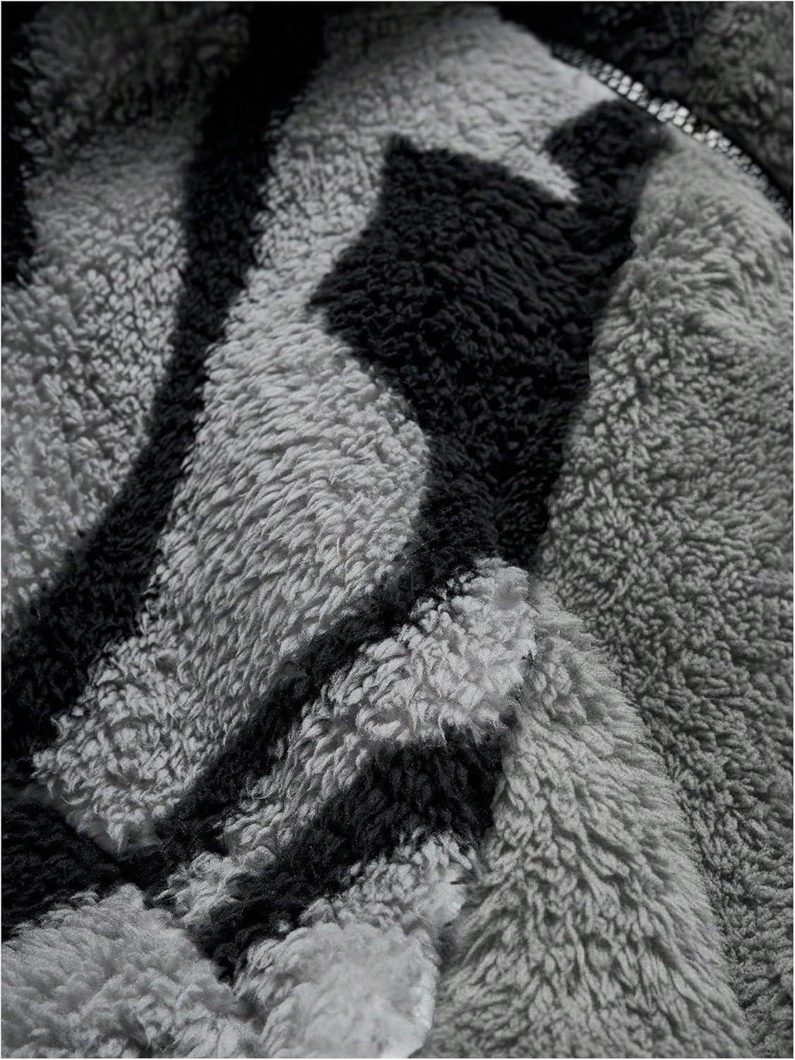 SOLY HUX Men’s Color Block Fleece Jacket Zip Up Long Sleeve Fuzzy Sherpa Warm Outerwear Winter Coats(Black and Grey)