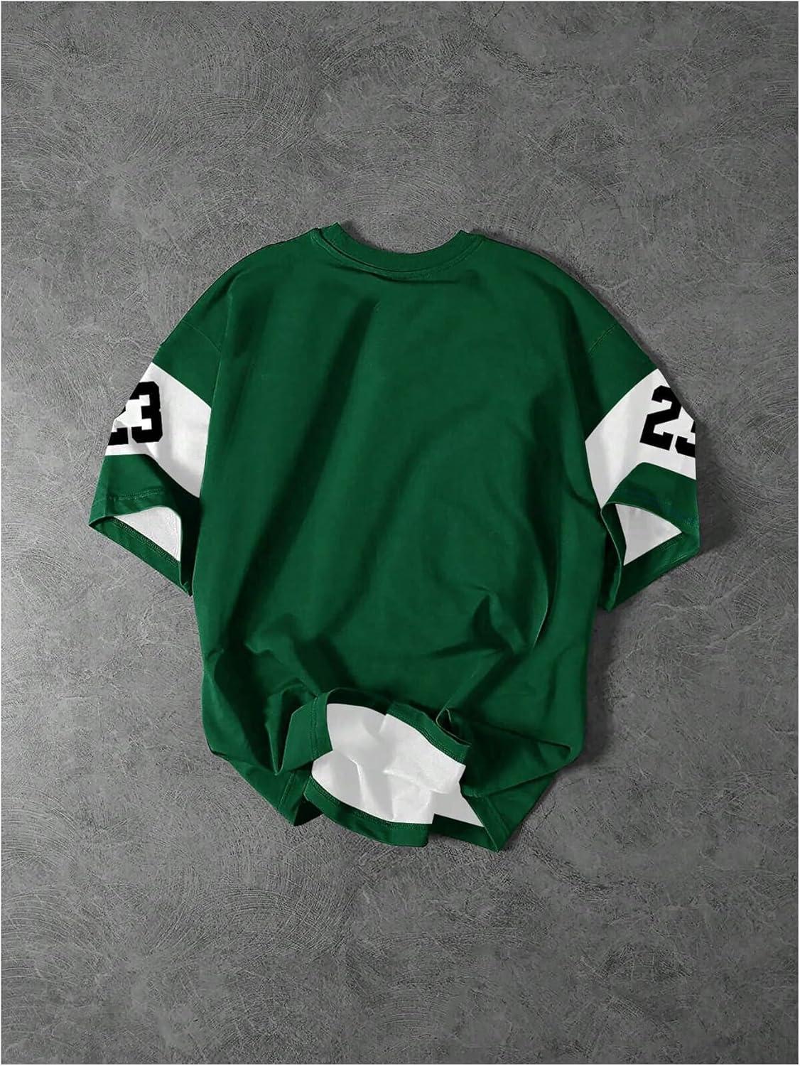 SOLY HUX Men’s Color Block Letter Graphic Tees Crew Neck Short Sleeve T Shirt Summer Tops(Green and White Letter)