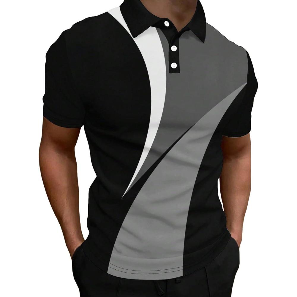 SOLY HUX Men’s Color Block Regular Fit Shirts Short Sleeve Casual Shirt(Black and Grey)