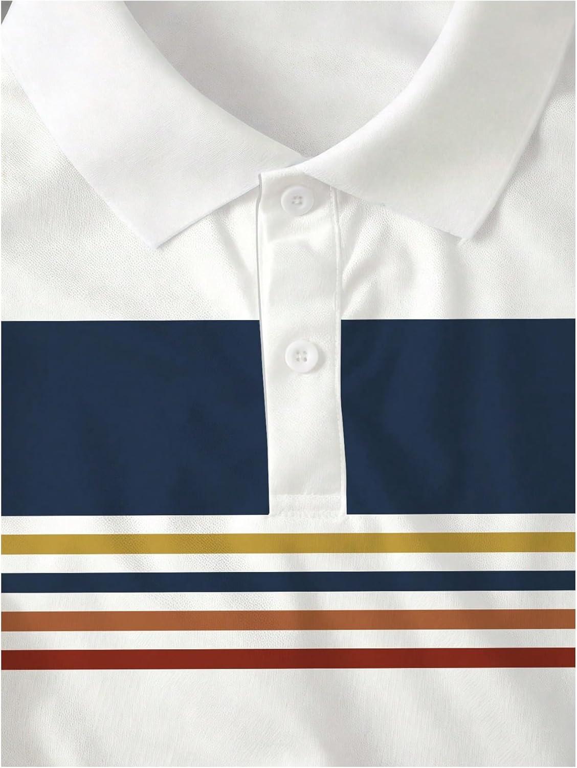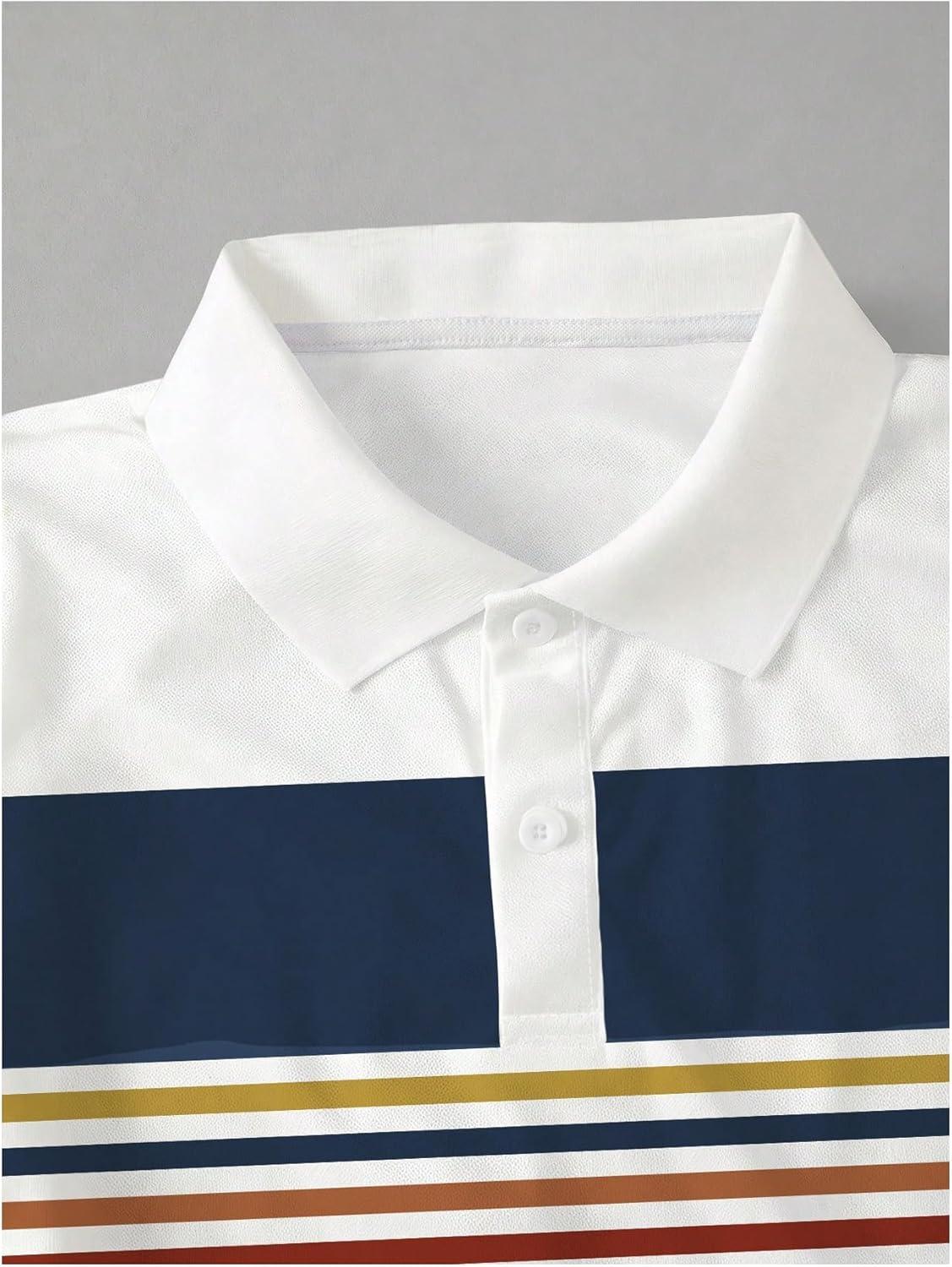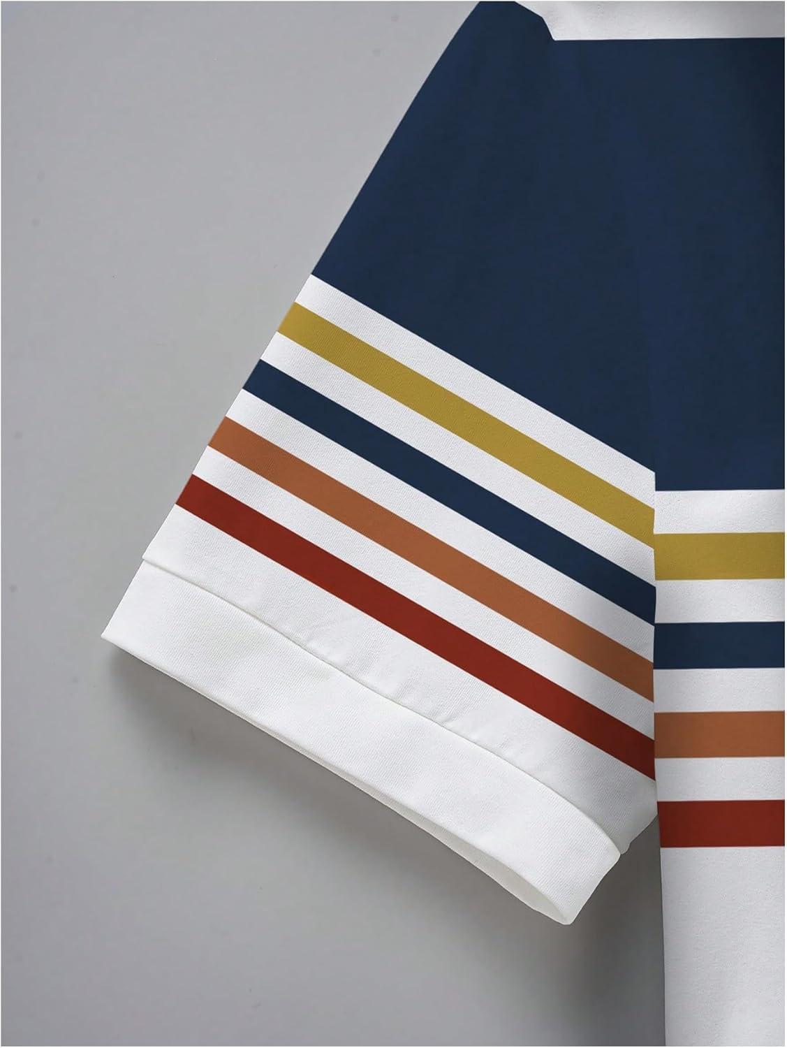 SOLY HUX Men’s Color Block Striped Golf Shirts Short Sleeve Classic T-Shirt Business Casual Tops(White Multi)